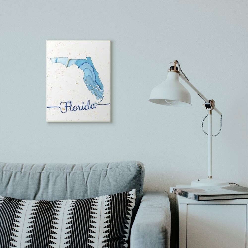 Stupell Industries Florida Agate Blue US State Design Wood Wall Art, Proudly Made in USA