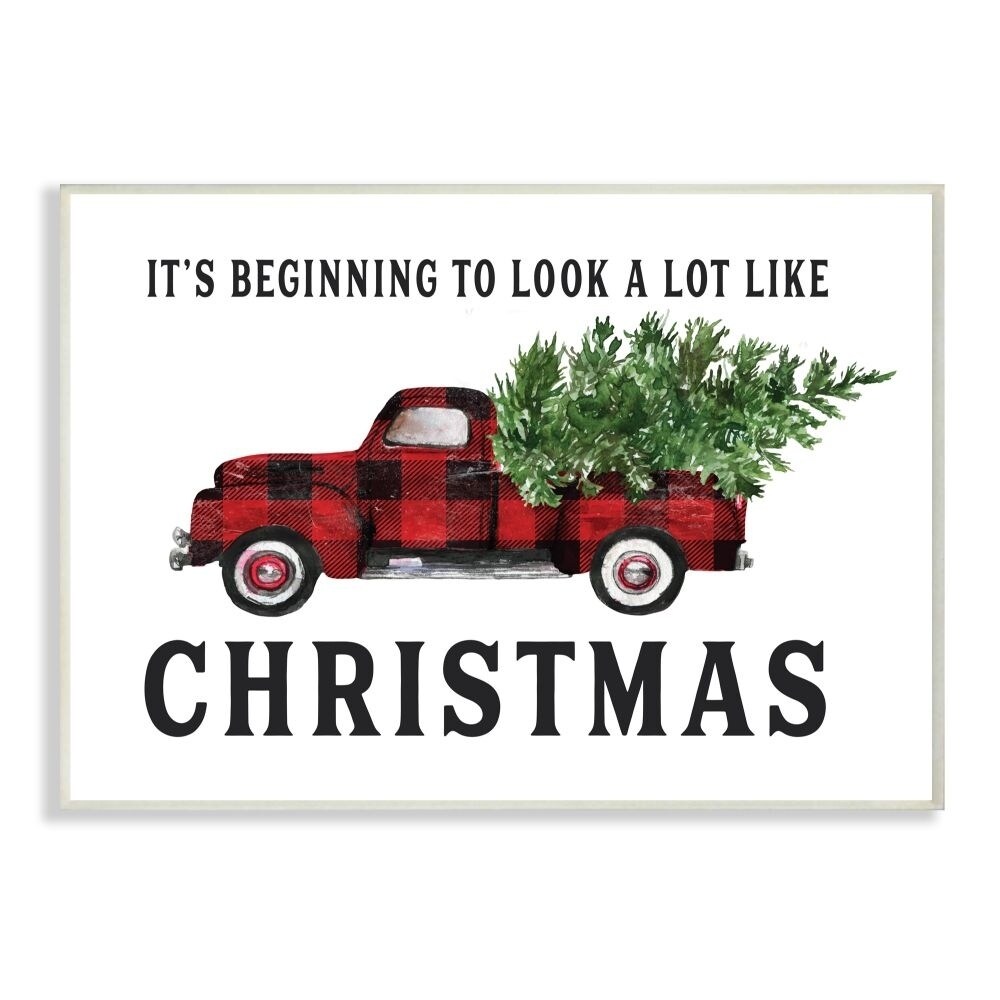 Stupell Industries Look A Lot Like Christmas Plaid Truck Holiday Word Design Wood Wall Art, Proudly Made in USA