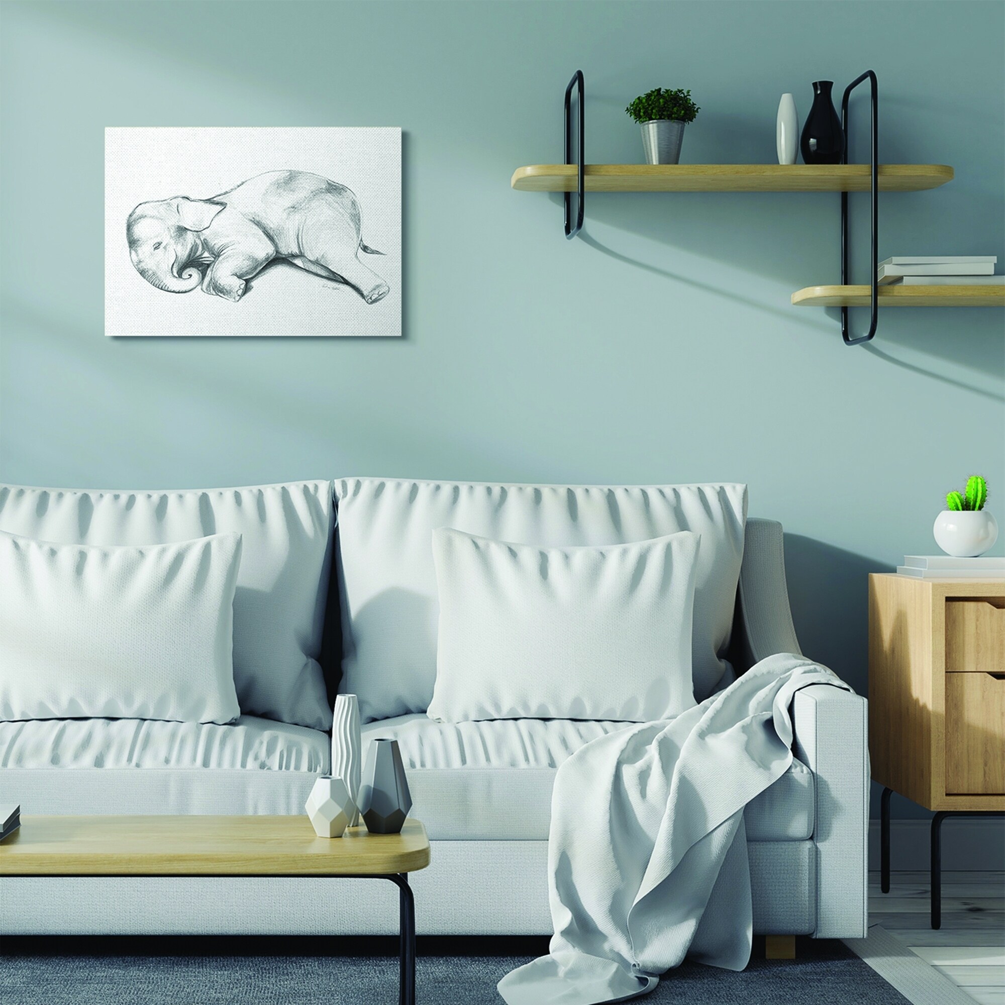 Stupell Industries Cute Elephant Baby Animal Neutral Grey Drawing Design Canvas Wall Art, Proudly Made in USA