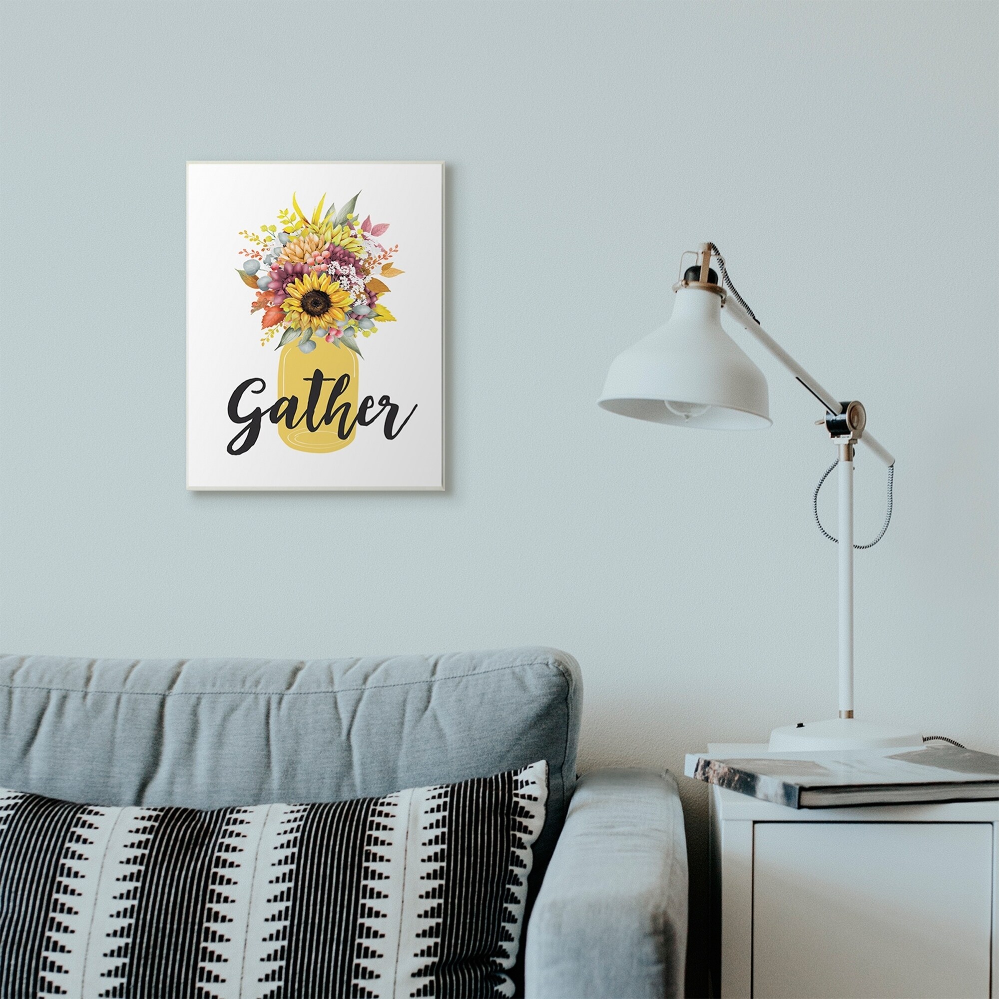 Stupell Industries Gather Flower Jar Yellow Fall Autumn Seasonal Design Wood Wall Art, Proudly Made in USA