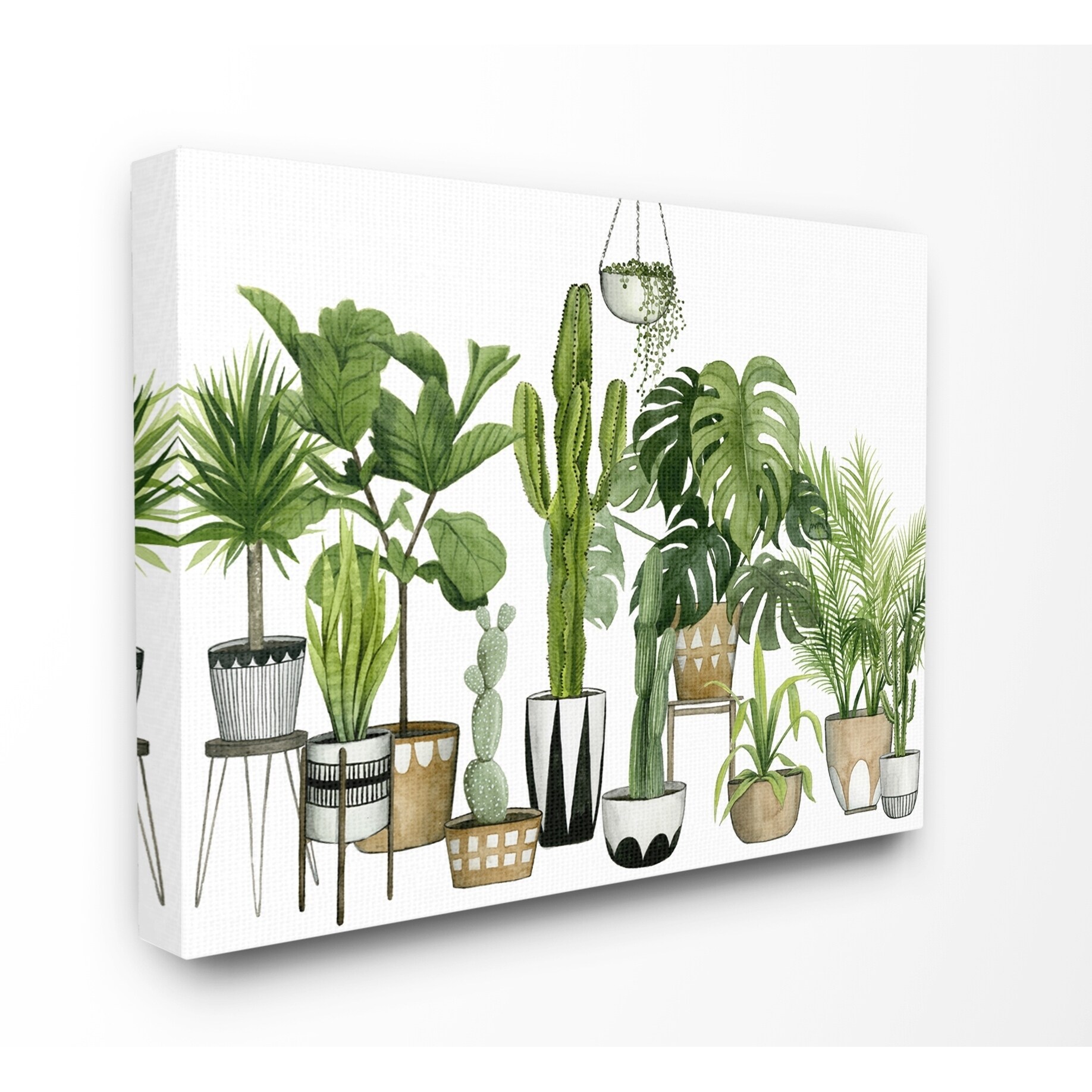 Stupell Boho Plant Scene with Cacti and Succulents in Geometric Pots Watercolor, Proudly Made in USA - 36 x 48