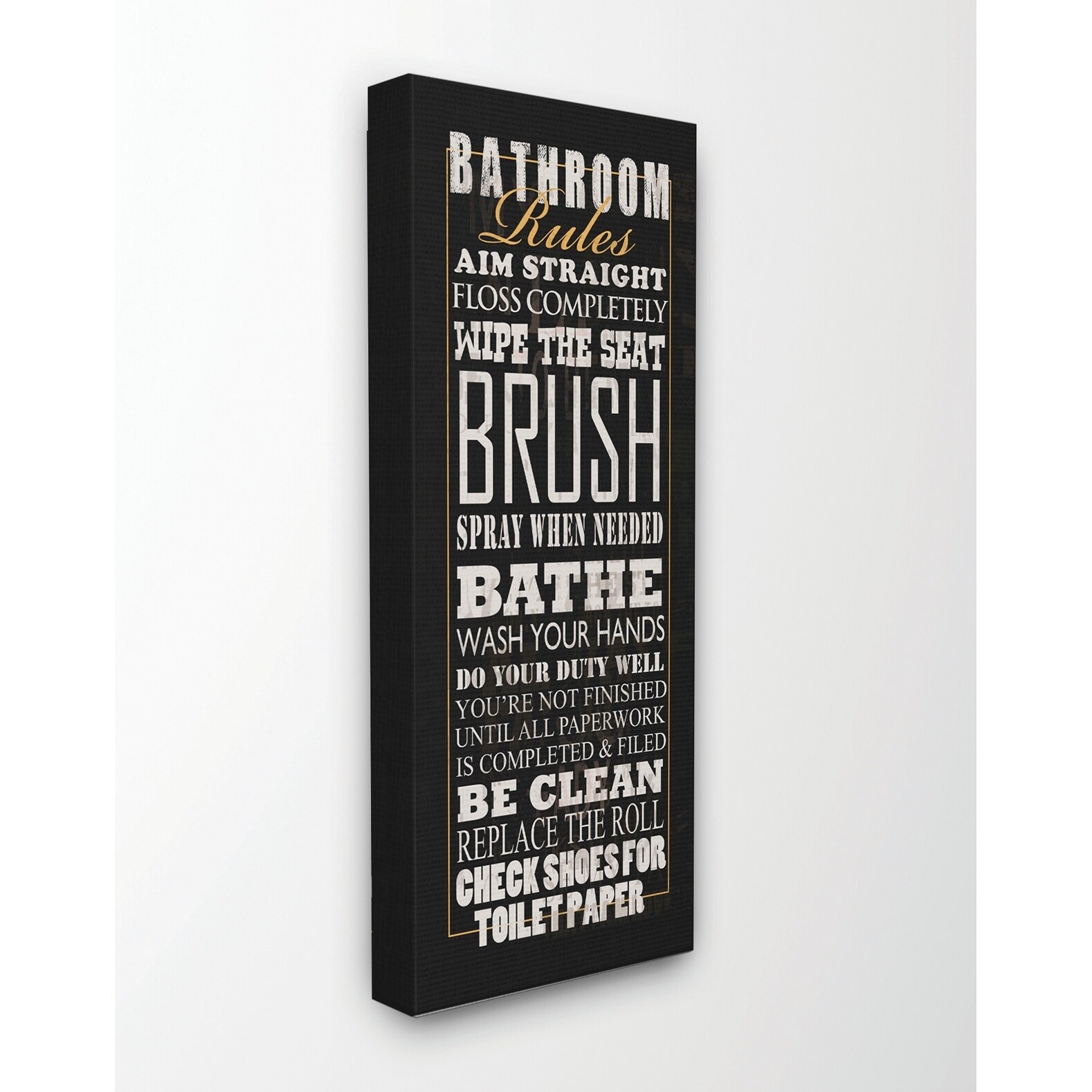 Stupell Industries Bathroom Rules Black Typography Tall Bathroom , Proudly Made in USA - 20 x 48