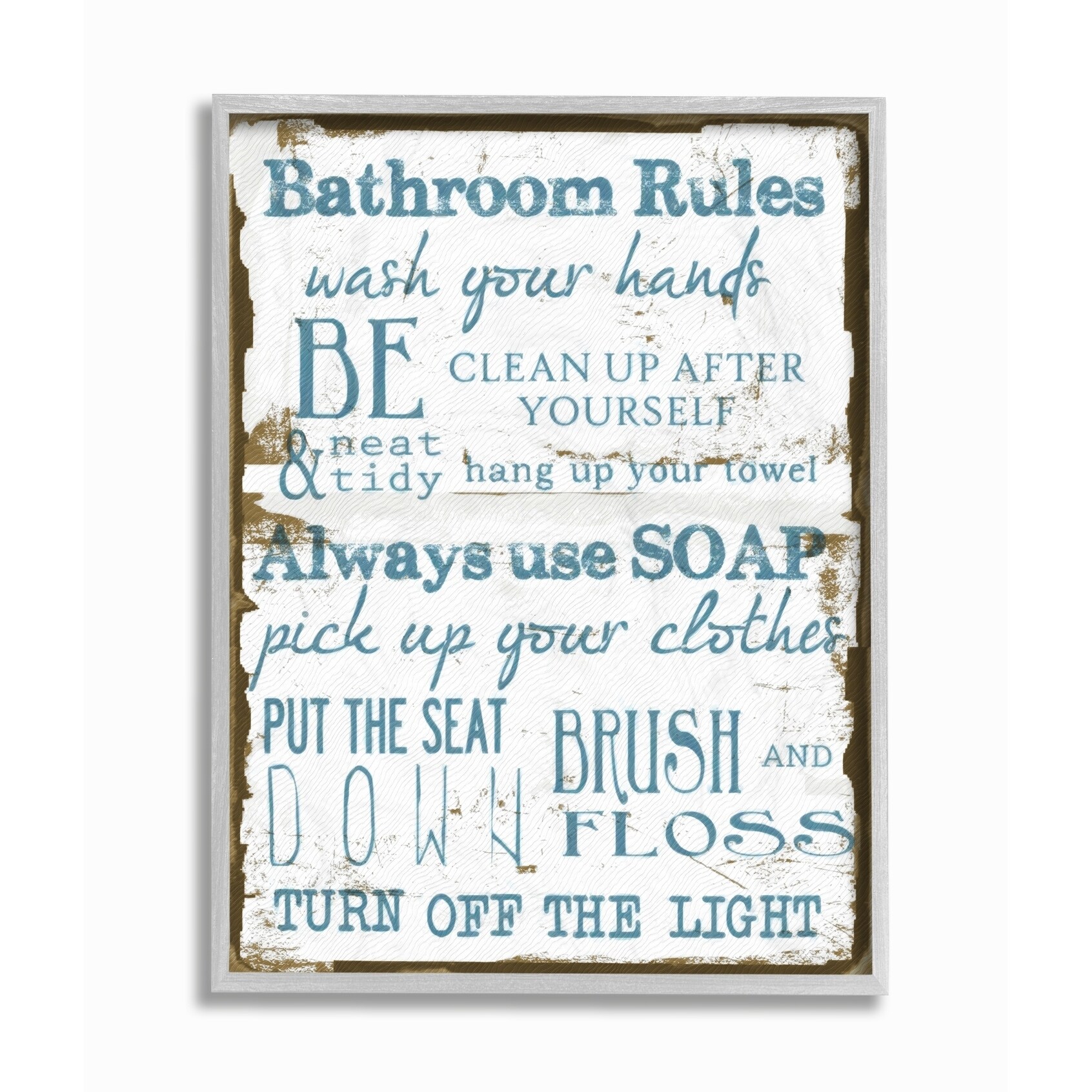 Stupell Industries Brown and Blue Classic Bathroom Rules Grey Framed, 16 x 20, Proudly Made in USA - 16 x 20