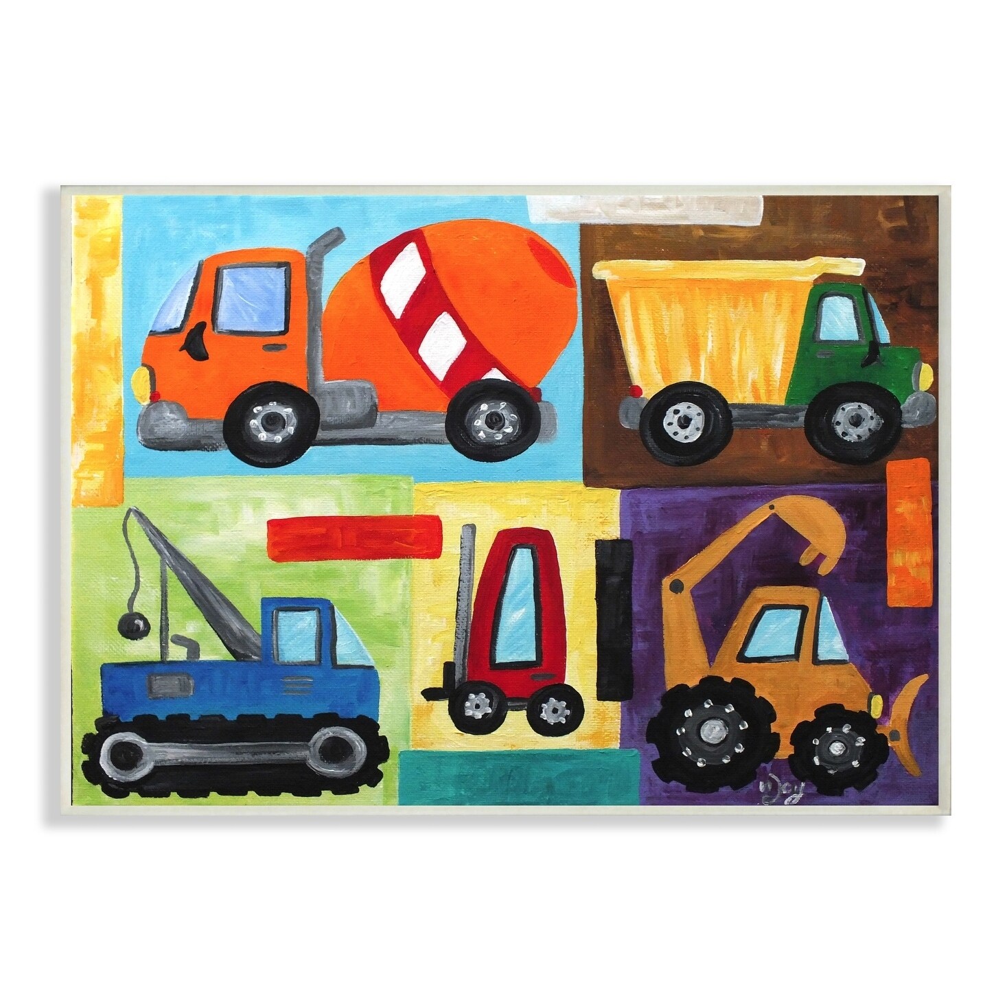 The Kids Room by Stupell Construction Trucks Set Wood Wall Art,10 x 15, Proudly Made in USA - 10 x 15