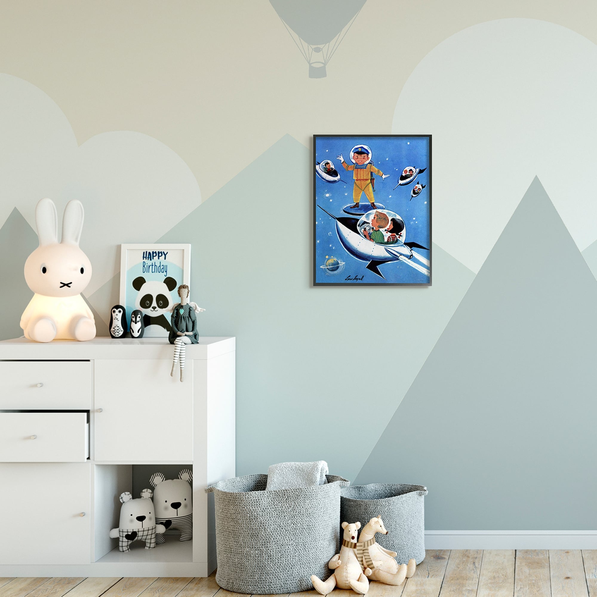 The Kids Room by Stupell Space Adventure Cartoon Blue Yellow Kids Nursery Painting Framed Wall Art, Proudly Made in USA