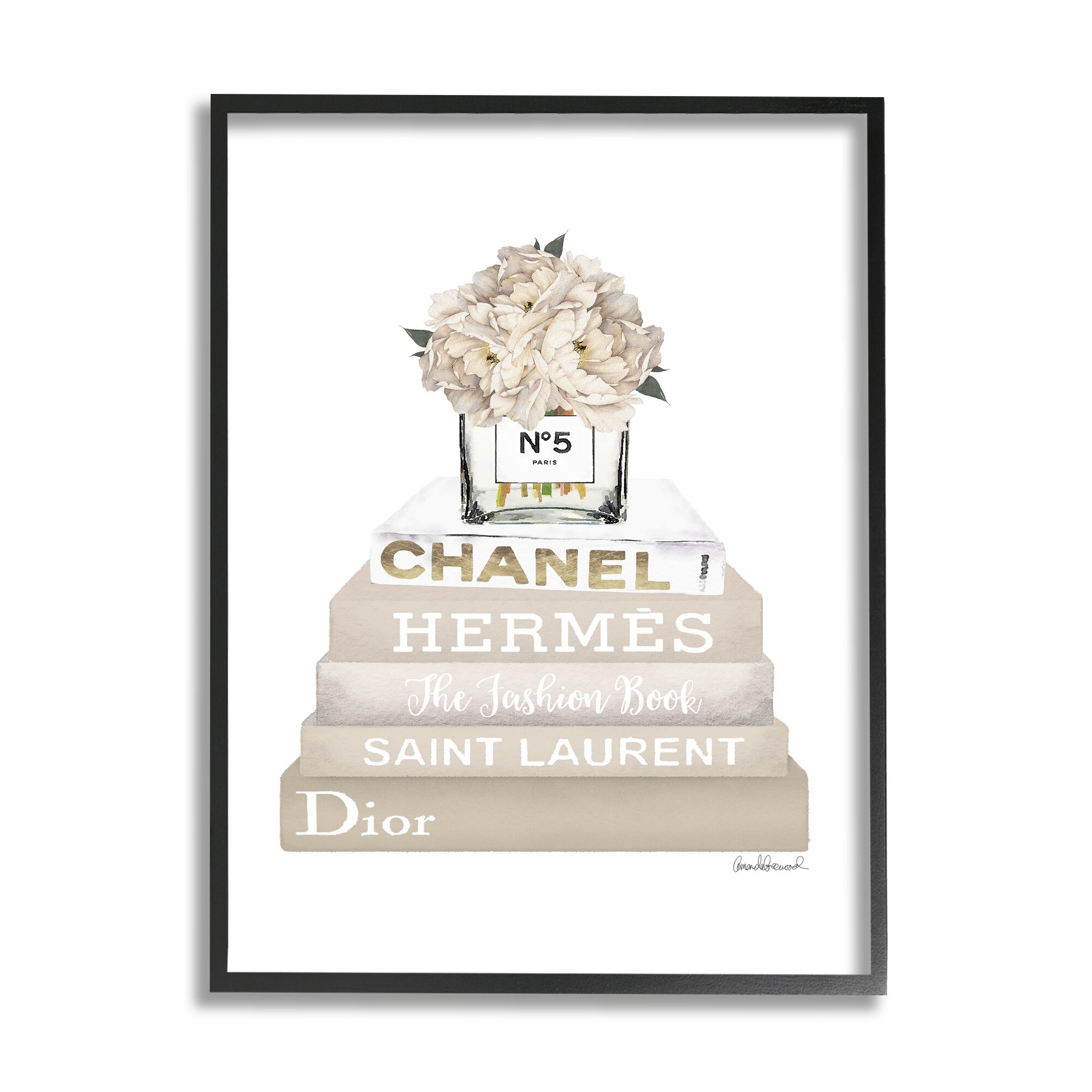The Stupell Home Décor Collection High Fashion Bookstack with Tan Flowers Framed Giclee Art, 11 x 1.5 x 14, Proudly Made in USA