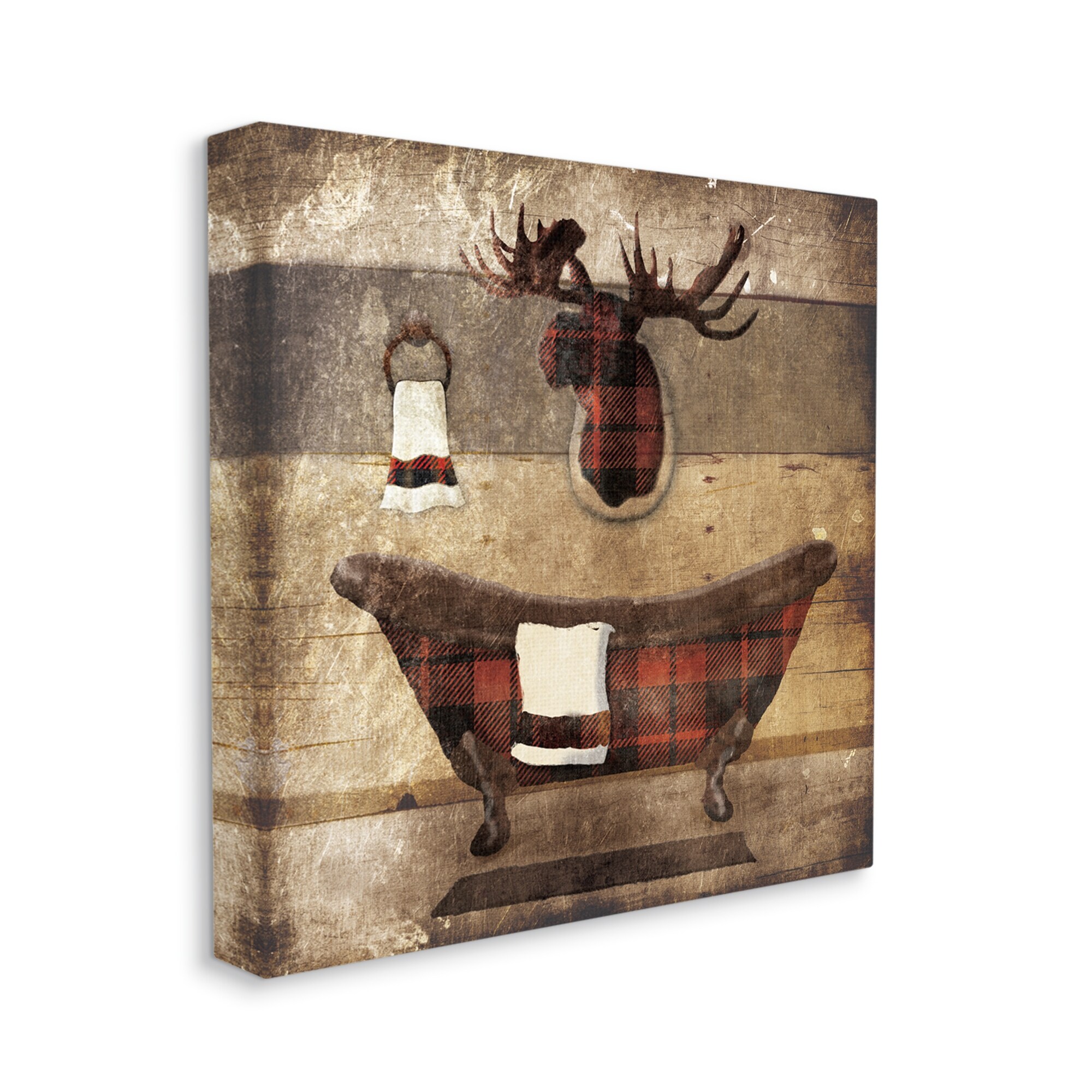 Stupell Industries Plaid Cabin Bathroom Country Wood Textured Design,17x17, Proudly Made in USA - Multi-Color