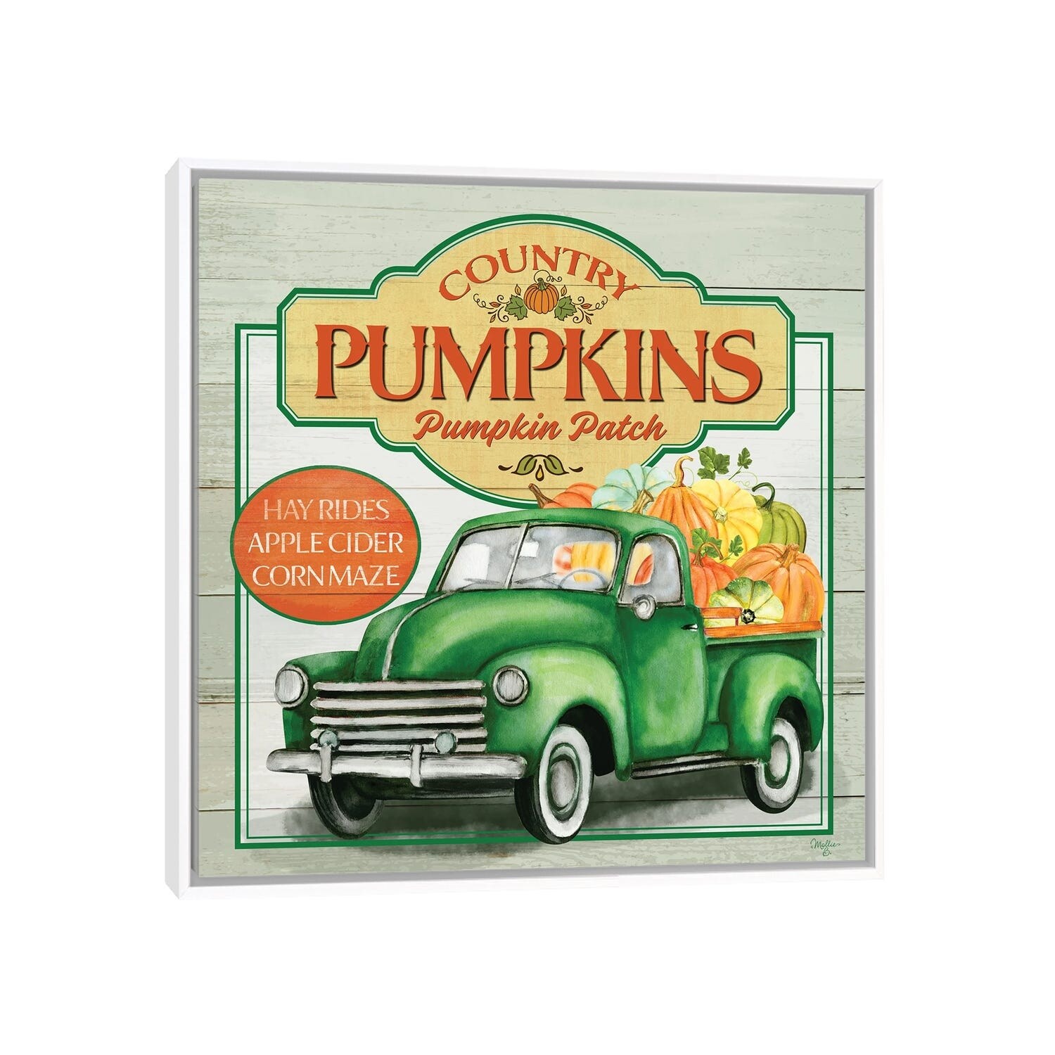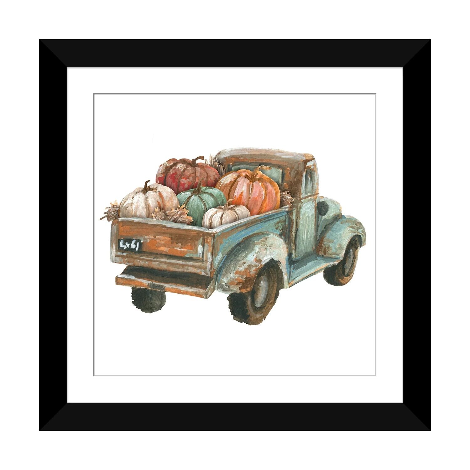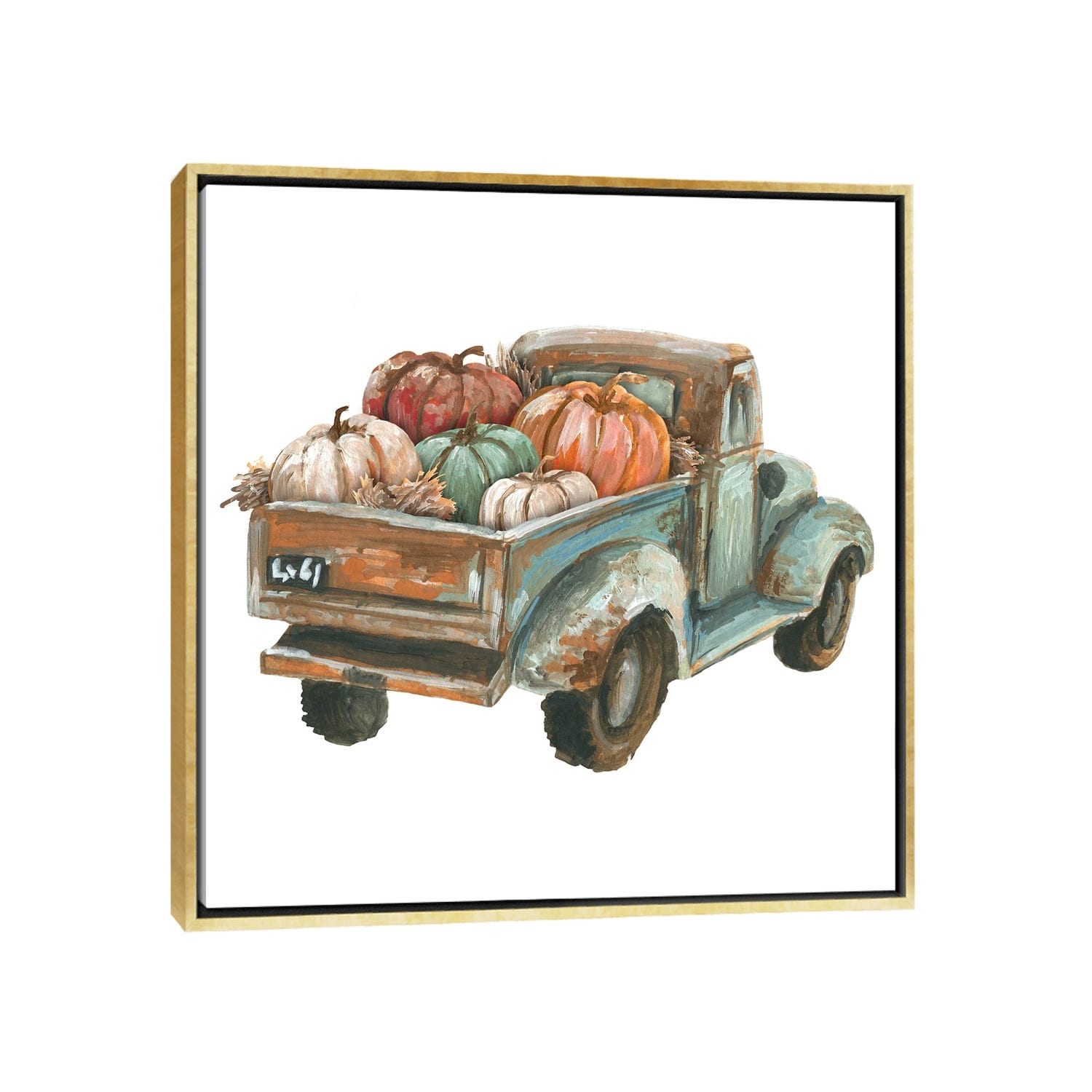 iCanvas "Fall Turquoise Truck With Pumpkins" by Ephrazy Graphics Framed Canvas Print