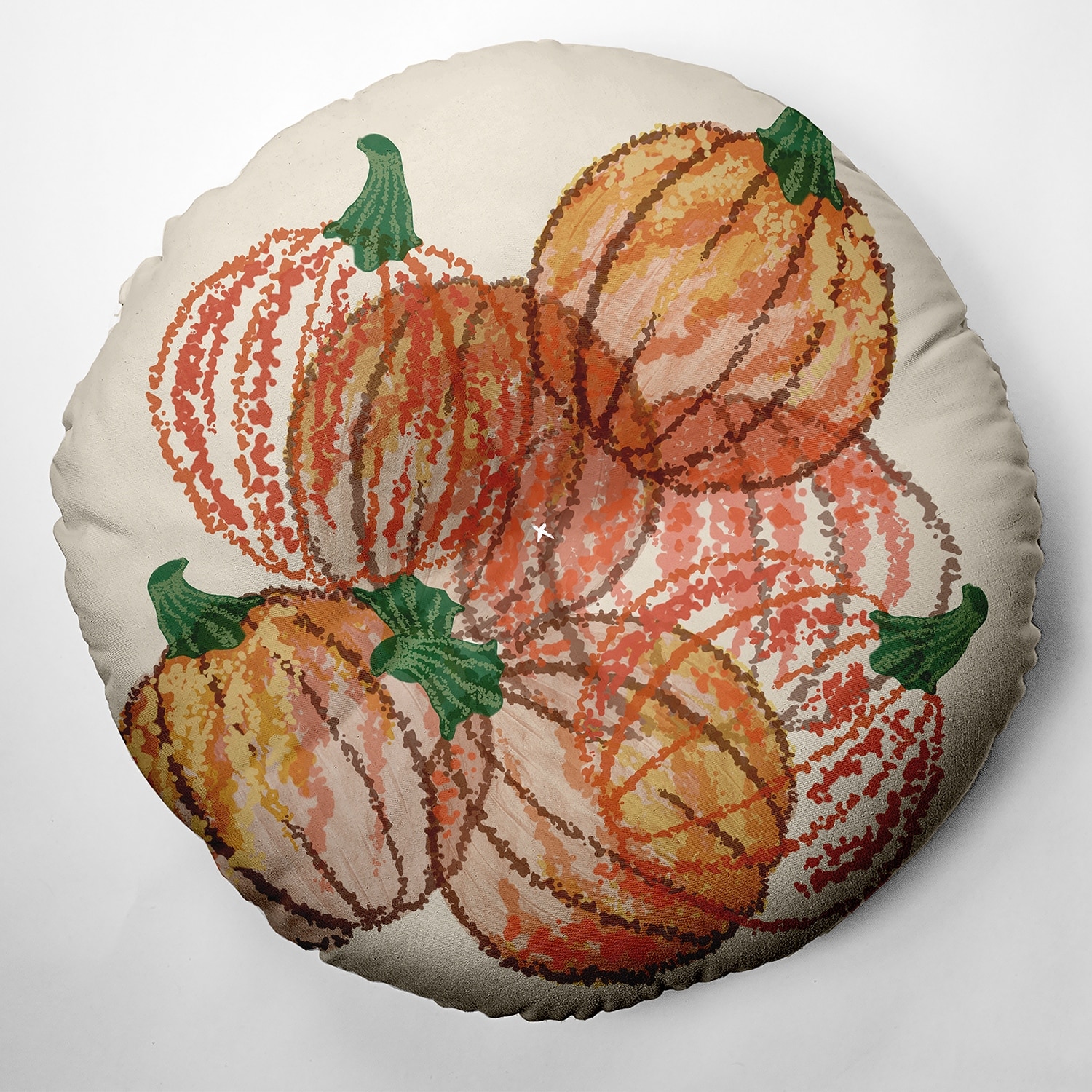 Pumpkin Pile Fall Design Tufted Floor Pillow