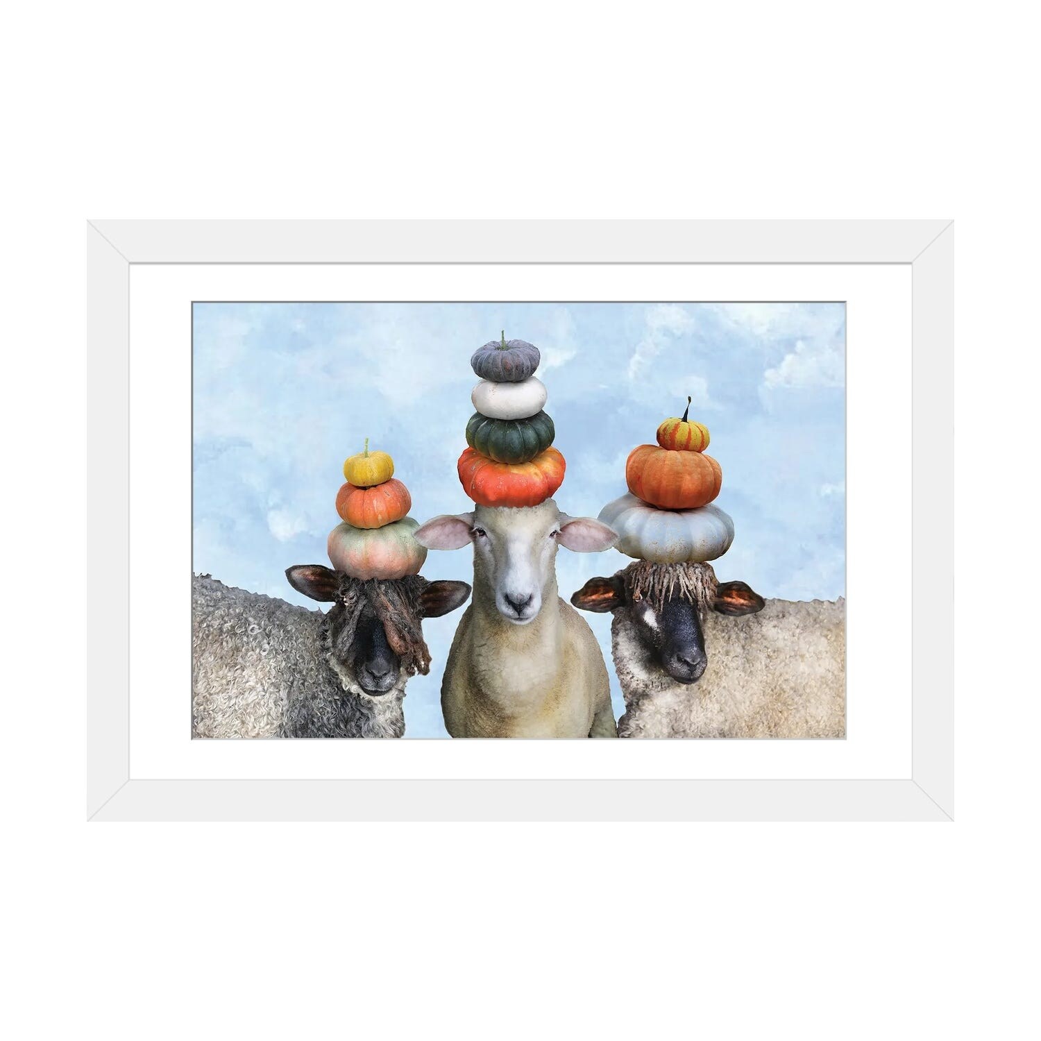 iCanvas "Three Sheep And Pumpkin Stacks II" by Eric Fausnacht