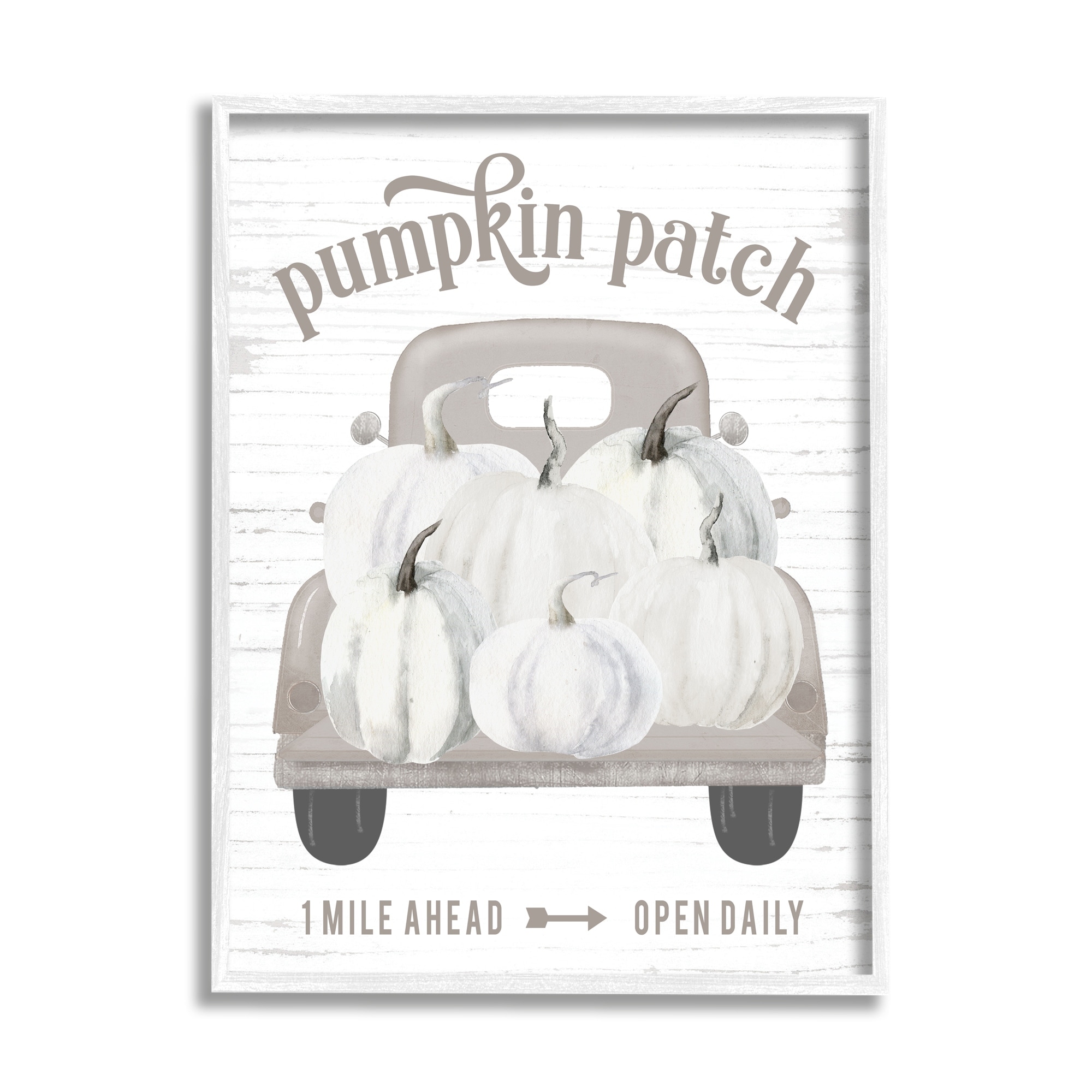 Stupell Industries Pumpkin Patch Farm Sign Fall Harvest Picking Framed Giclee Texturized Art by Cindy Jacobs