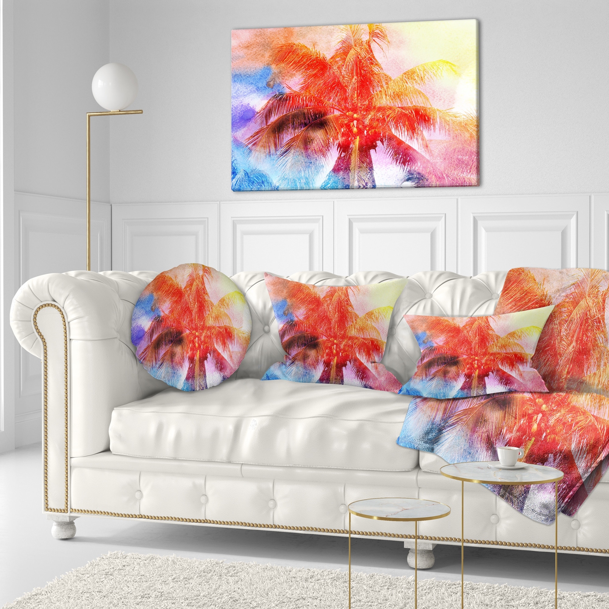 Designart "Retro Palms Red Watercolor" Trees Canvas Art Print