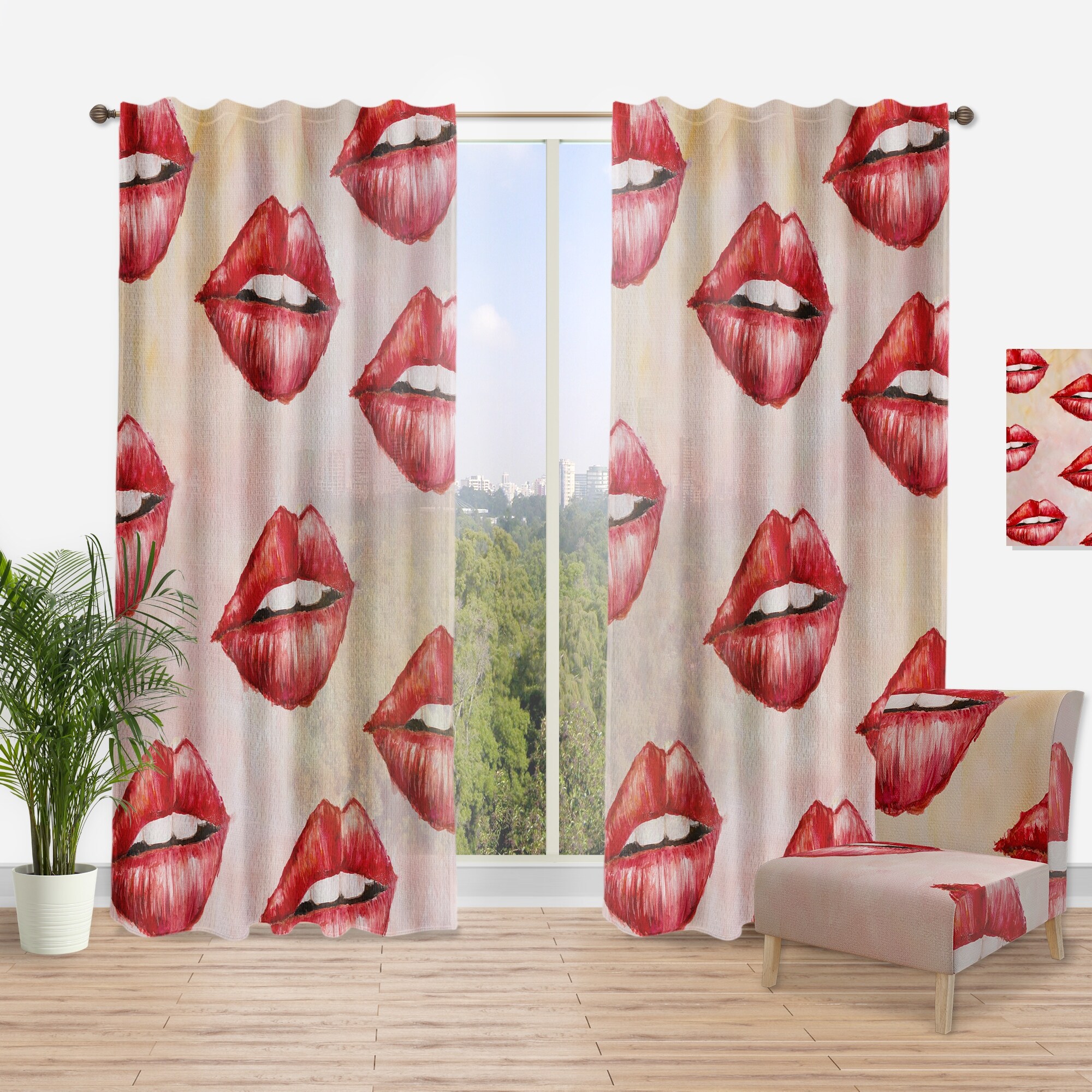 Designart 'Red Woman Lips Pattern' Modern Curtain Single Panel