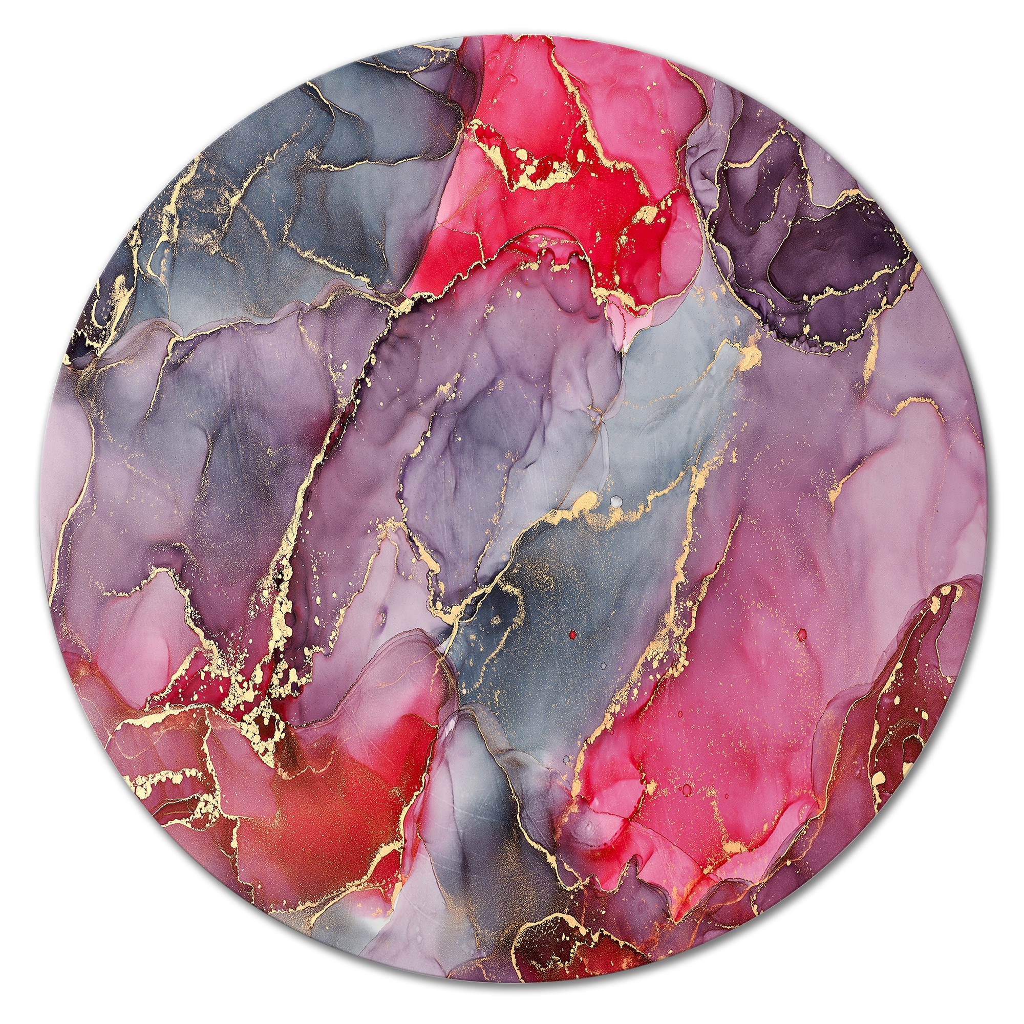 Designart 'Red And Purple Luxury Abstract Fluid Art' Modern Metal Circle Wall Art