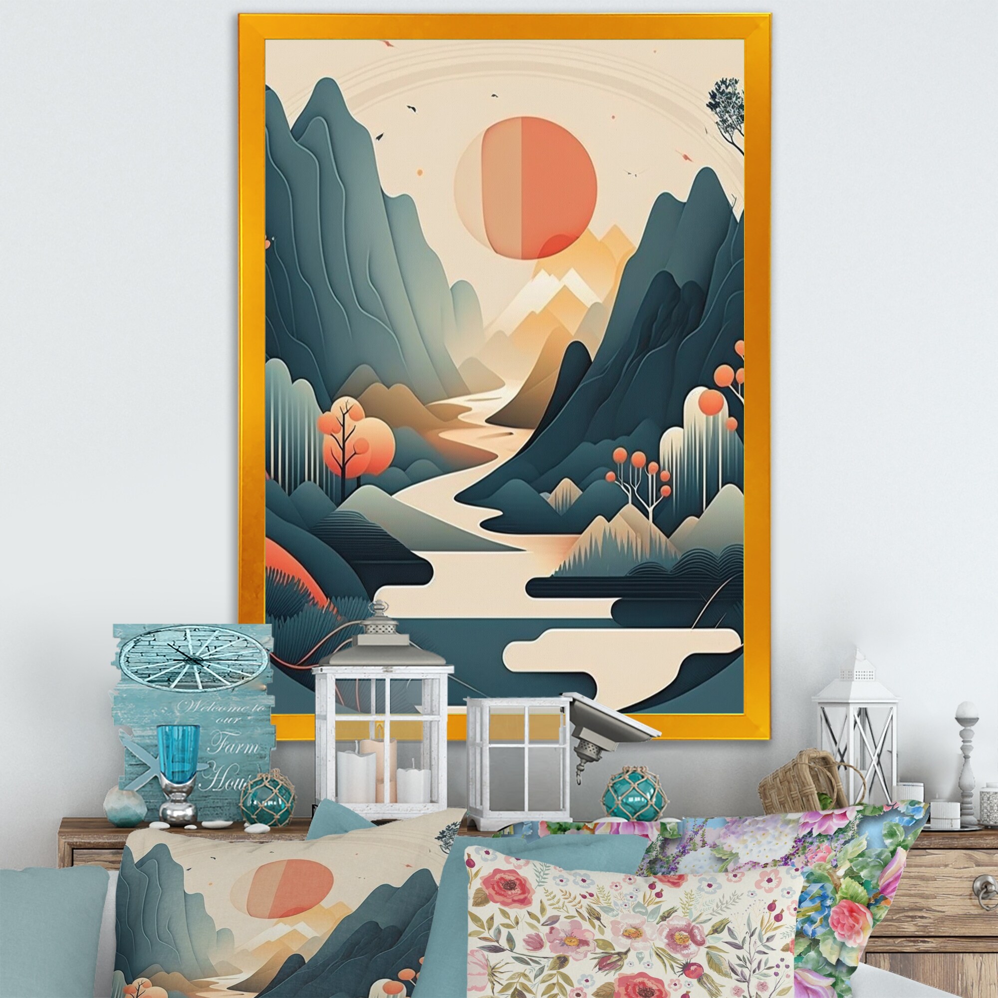 Designart "Full Red Moon Over the Mountains VIII" Landscape Mountains Framed Art Print