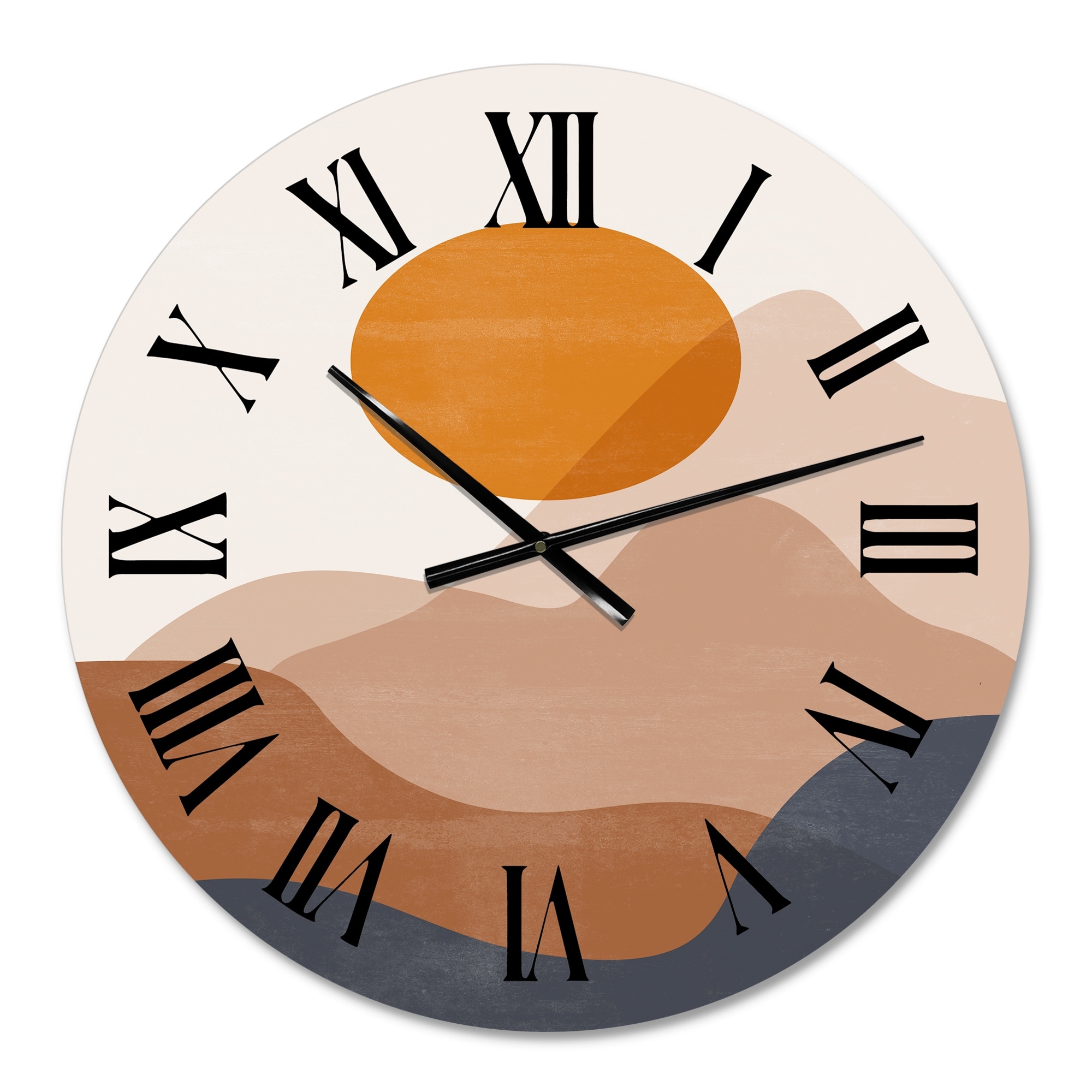 Designart 'Abstract Red Moon in Earth Toned Mountains II' Modern wall clock