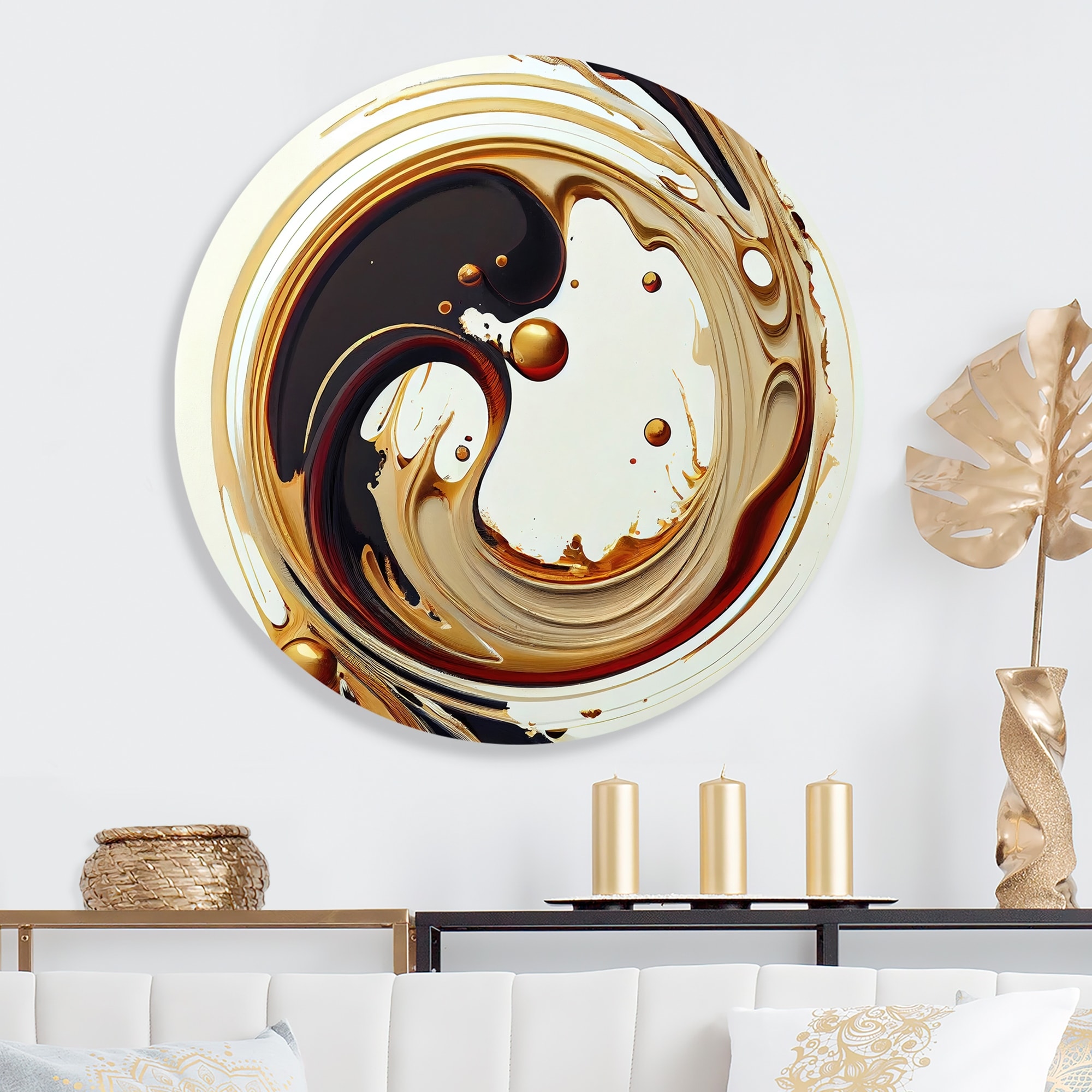 Designart 'White, Gold And Red Spiral VI' Modern Metal Round Wall Art