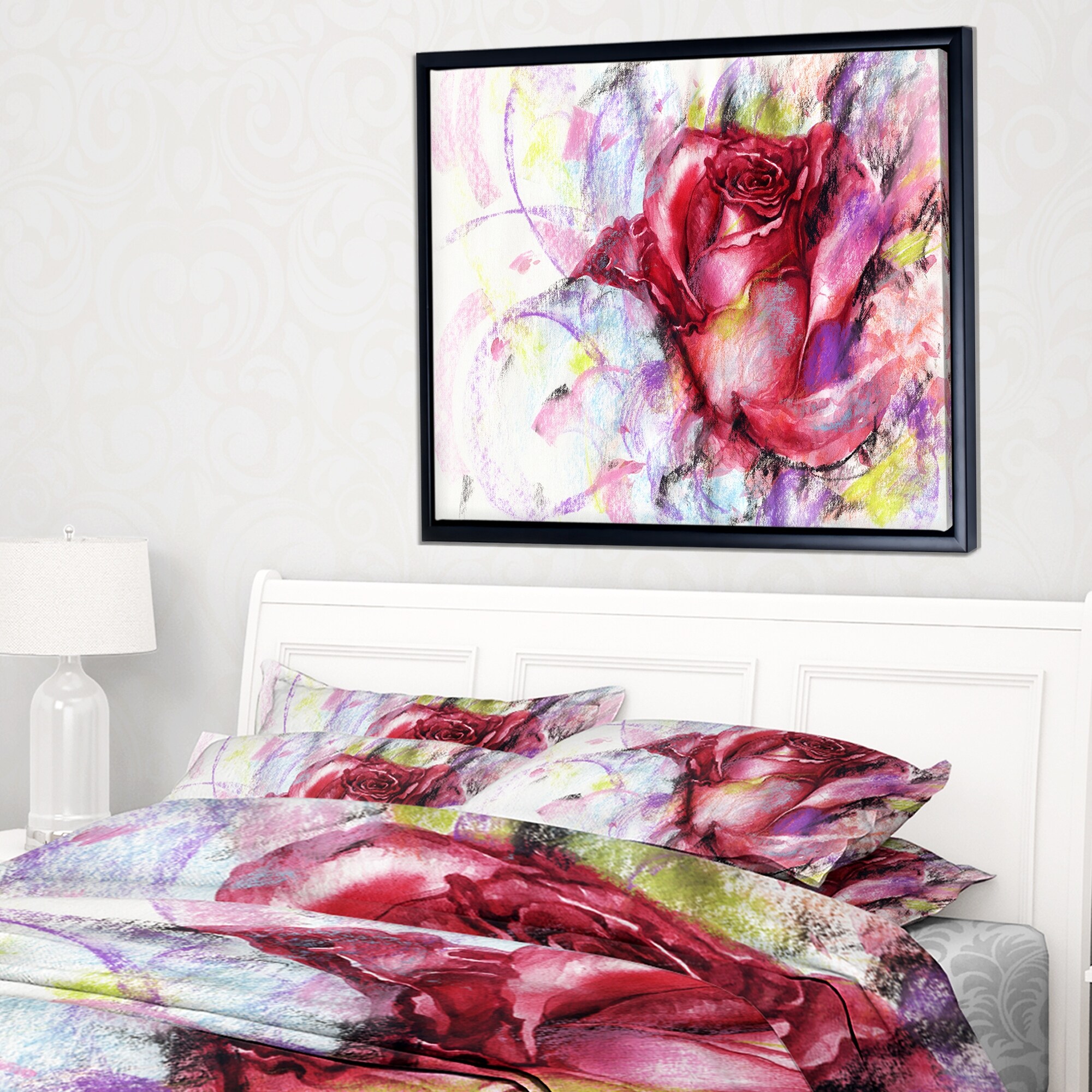 Designart "Red Rose Illustration" Floral Art Framed Canvas Print