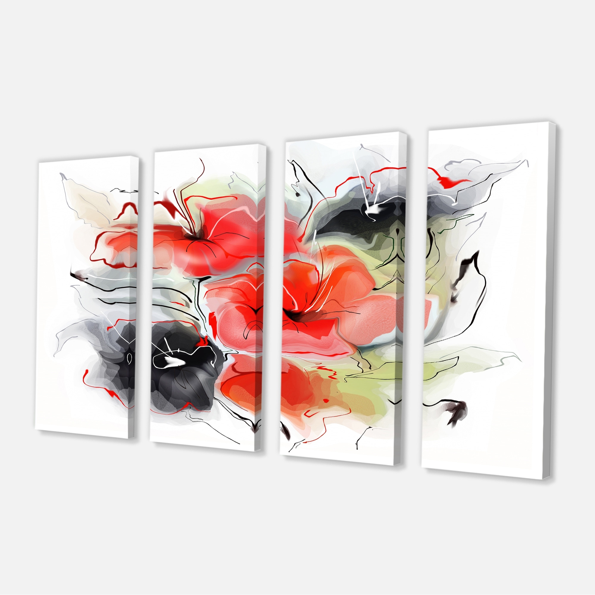 Designart "Red Black Abstract Floral Design" Extra Large Floral Wall Art