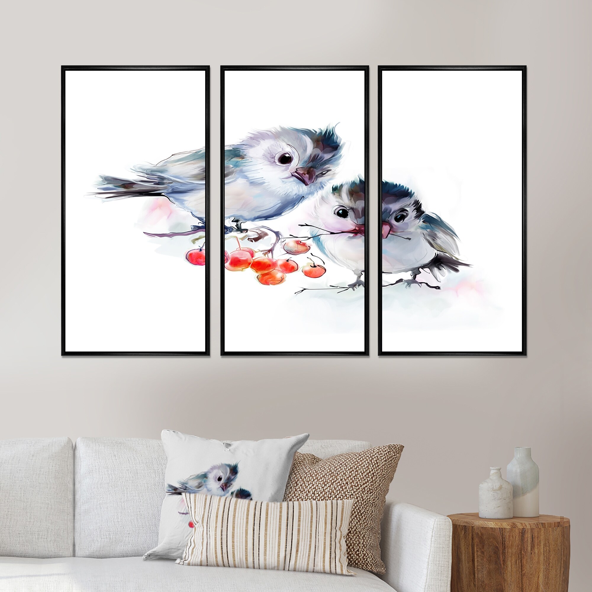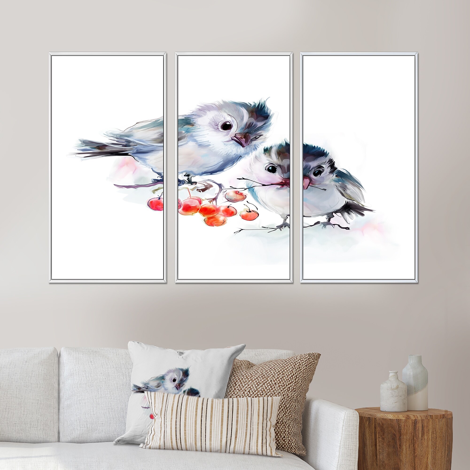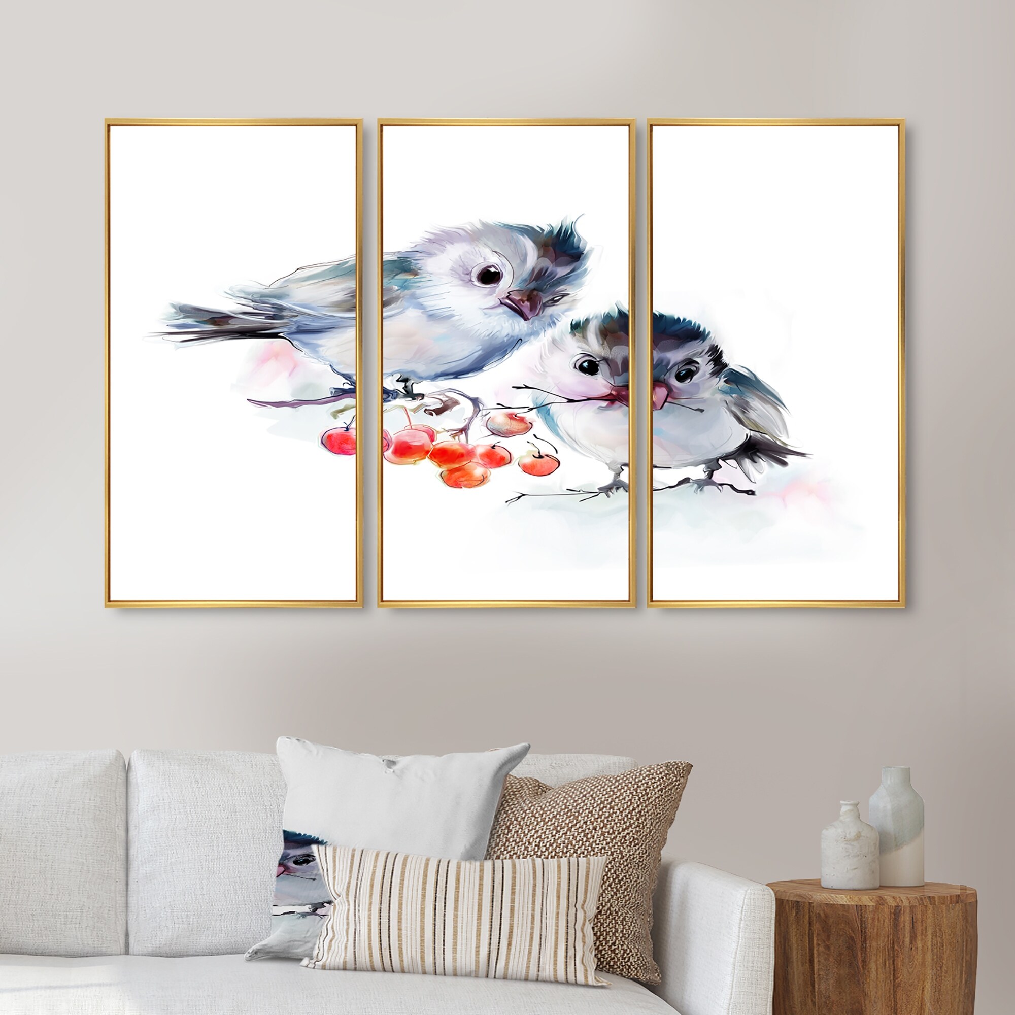 Designart "Birds on Branch With Red Berries" Animal Framed Art Prints Set of 3 - 4 Colors of Frames