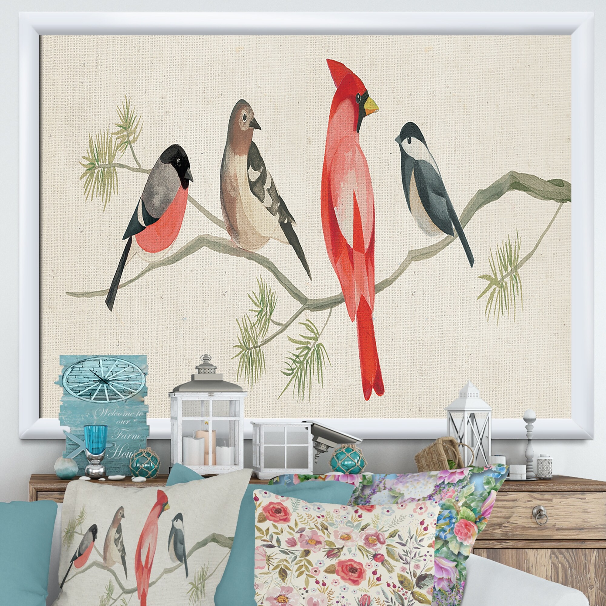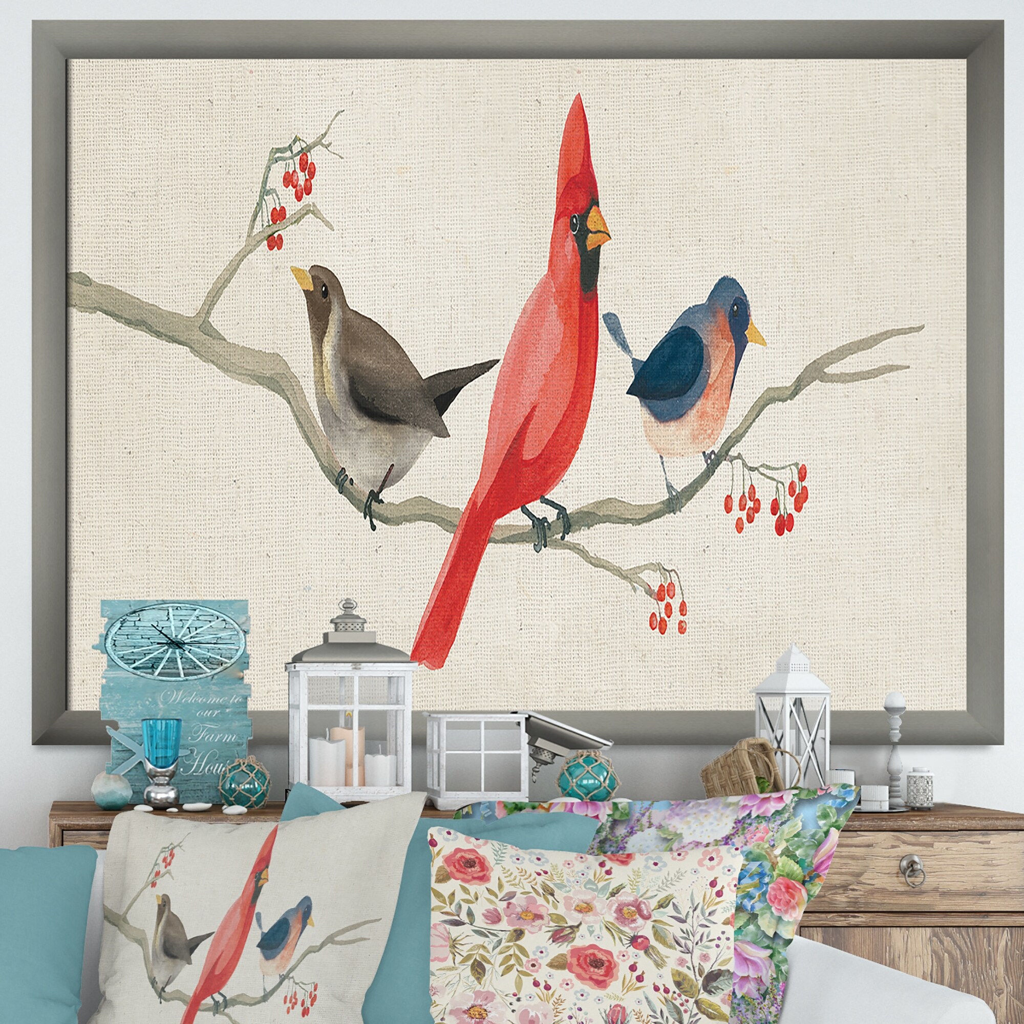 Designart "Red Catching Up Bird Family" Farmhouse Canvas Art