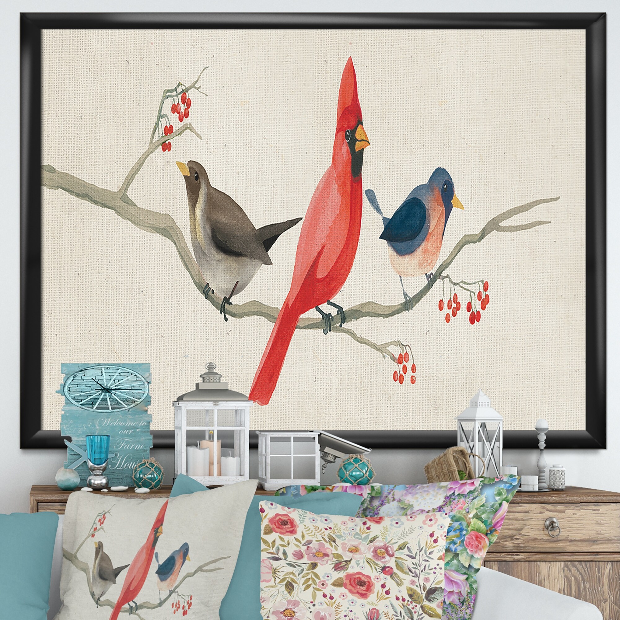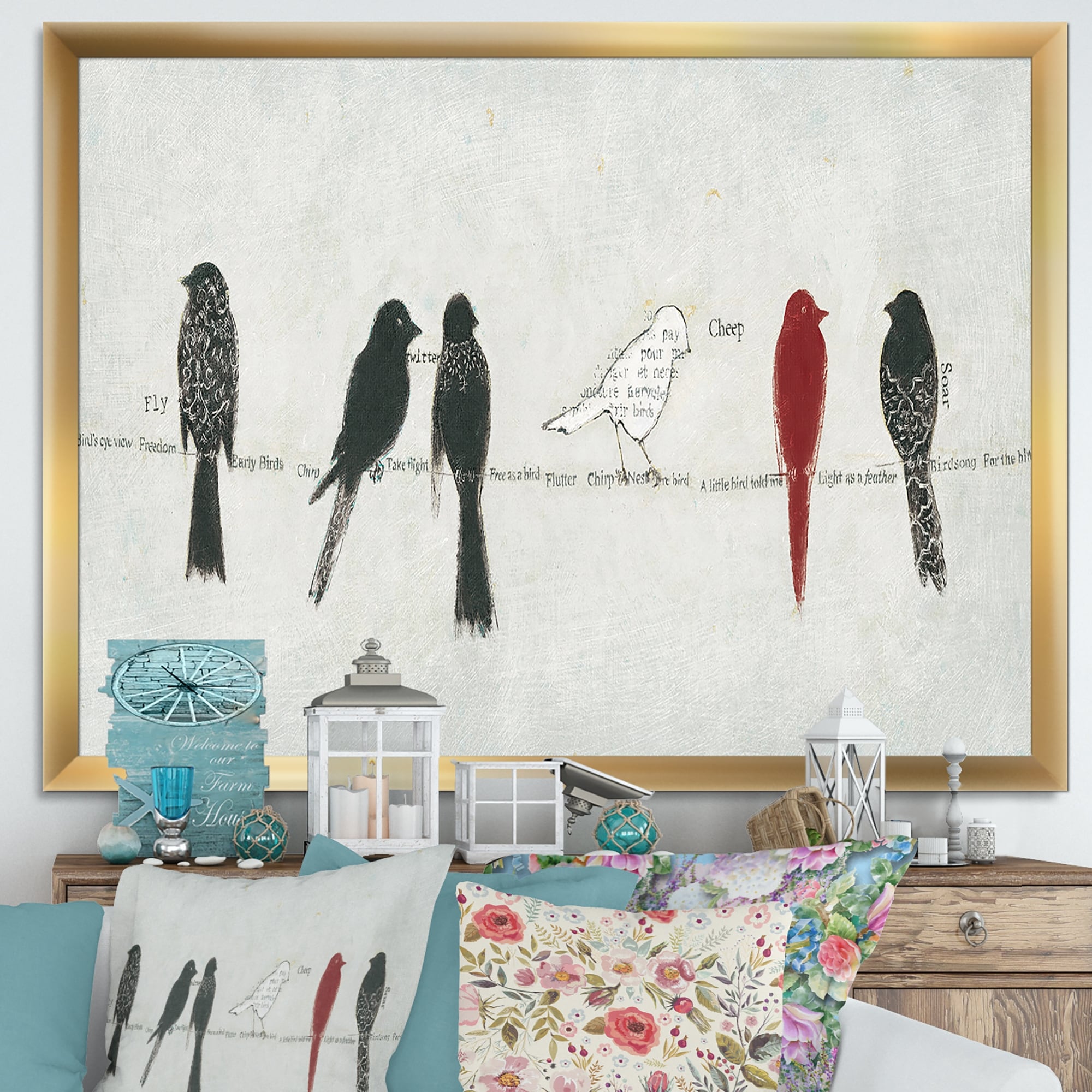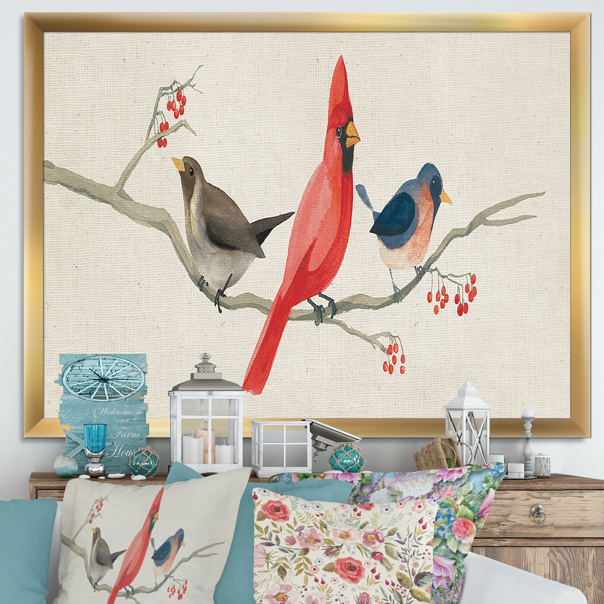 Designart "Red Catching Up Bird Family" Farmhouse Framed Art Print