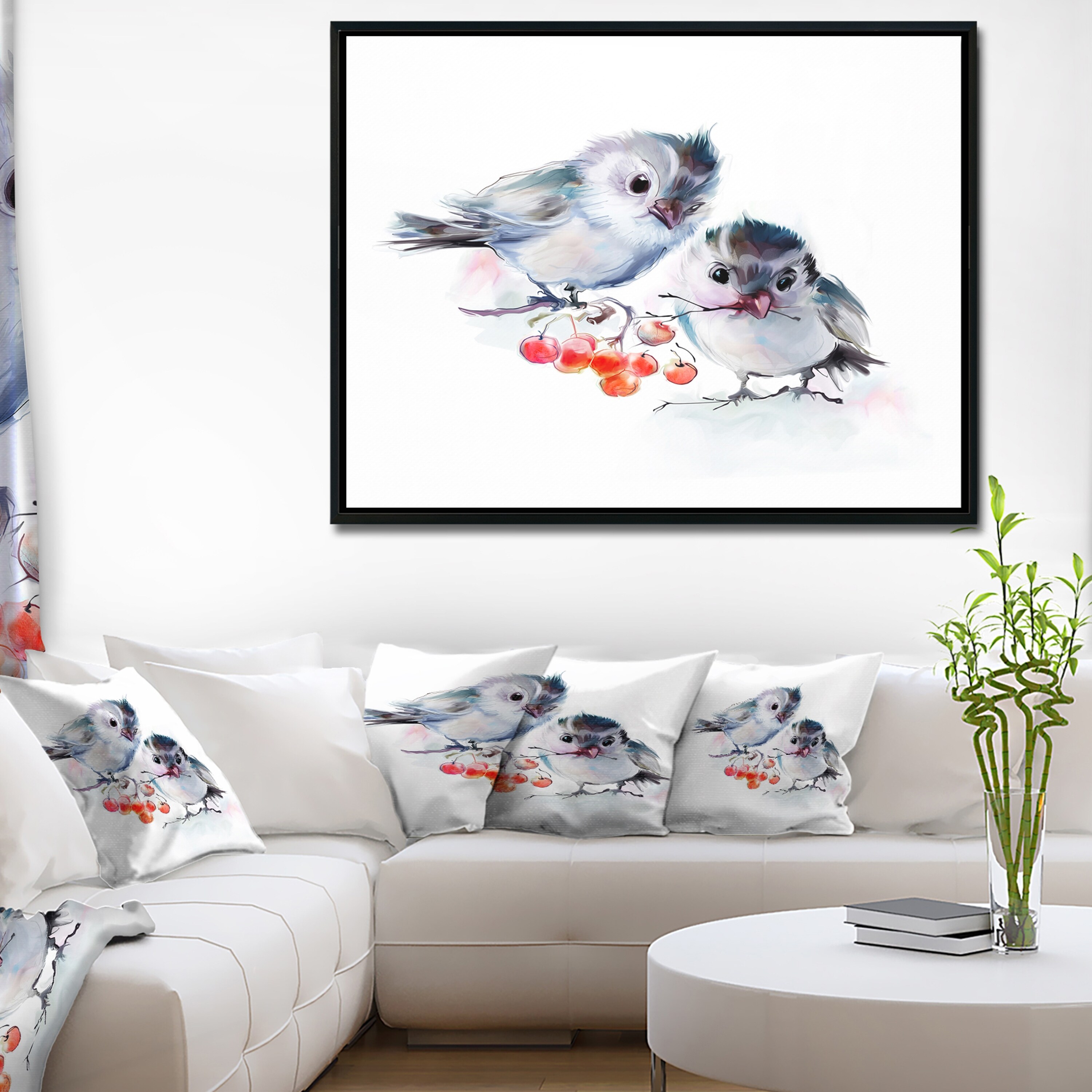Designart "Birds on Branch With Red Berries" Animal Framed Canvas Art Print