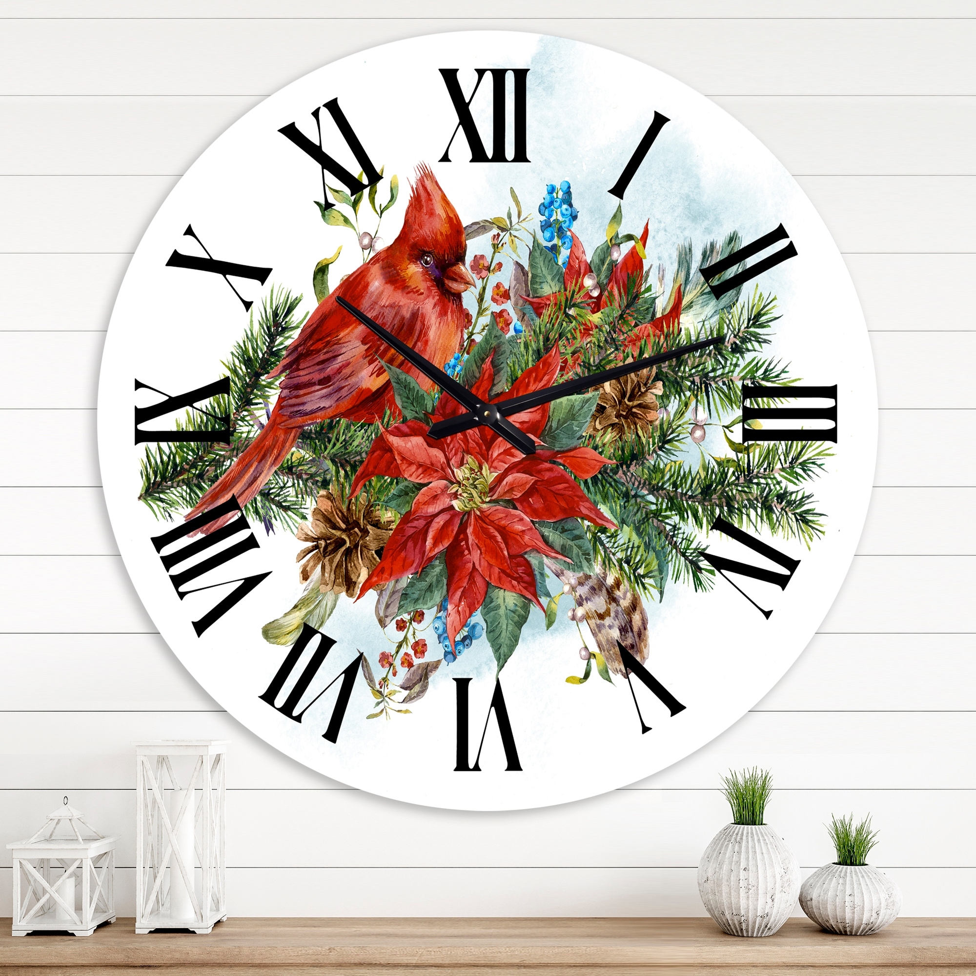 Designart 'Christmas Poinsettia and Red Cardinal Bird' Traditional wall clock