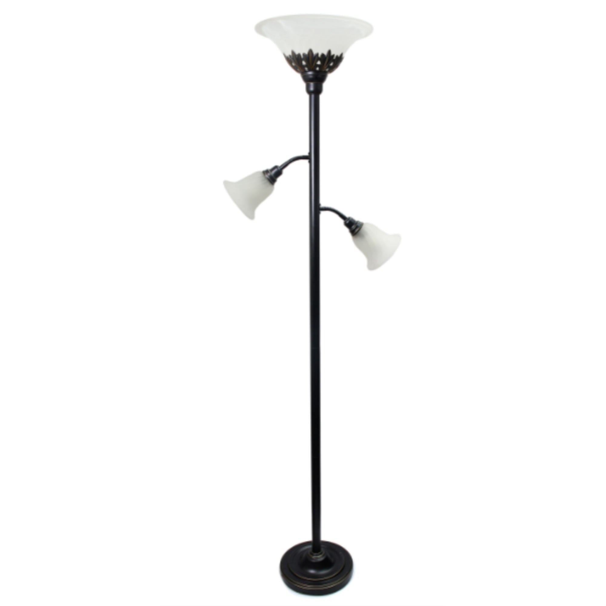 LF2002-RBW 3 Light Floor Lamp with White Scalloped Glass Shades, Restoration Bronze & White - Black