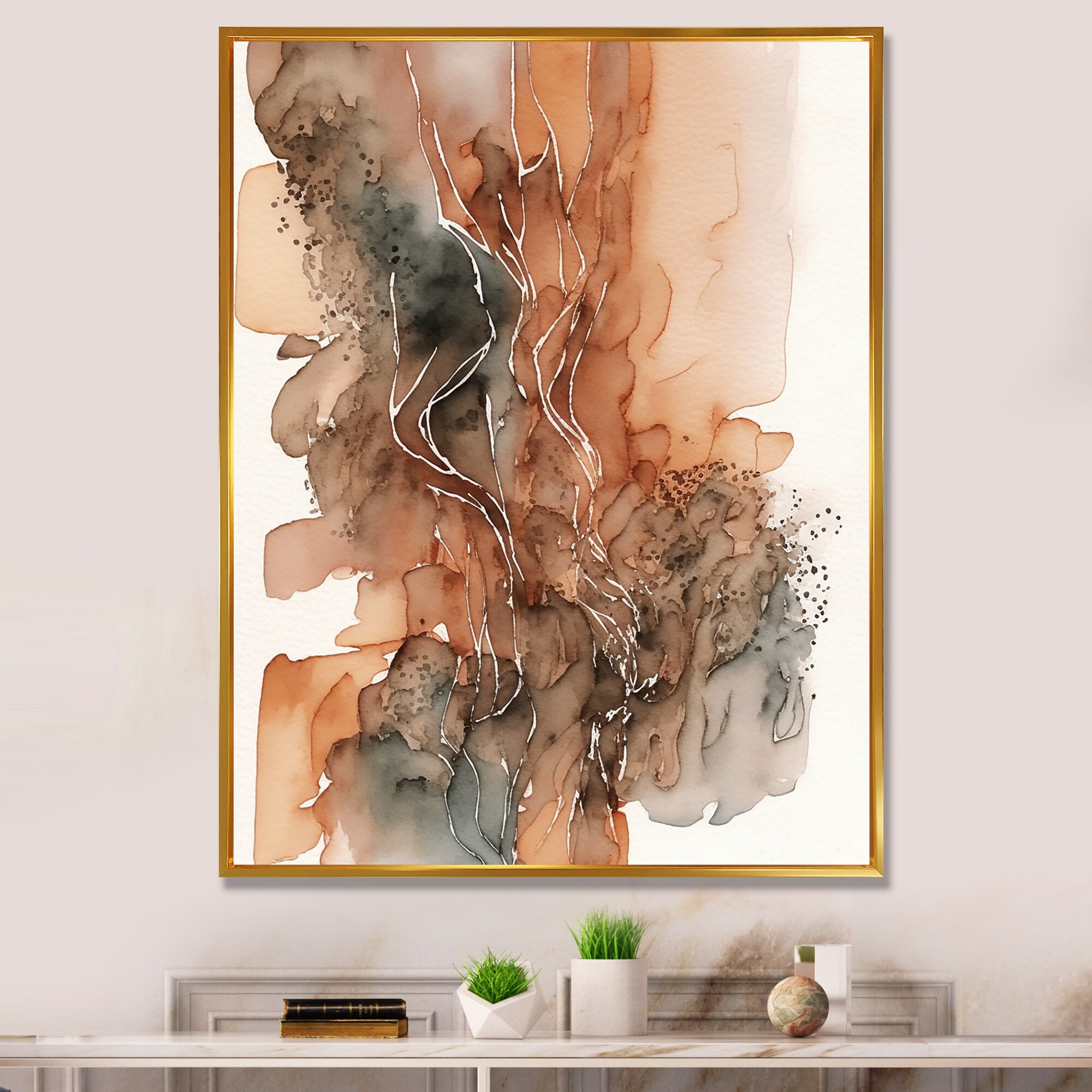 Designart "Wanderings In Canyon Ridge IV" Abstract Liquid Ink Framed Canvas Wall Art Print
