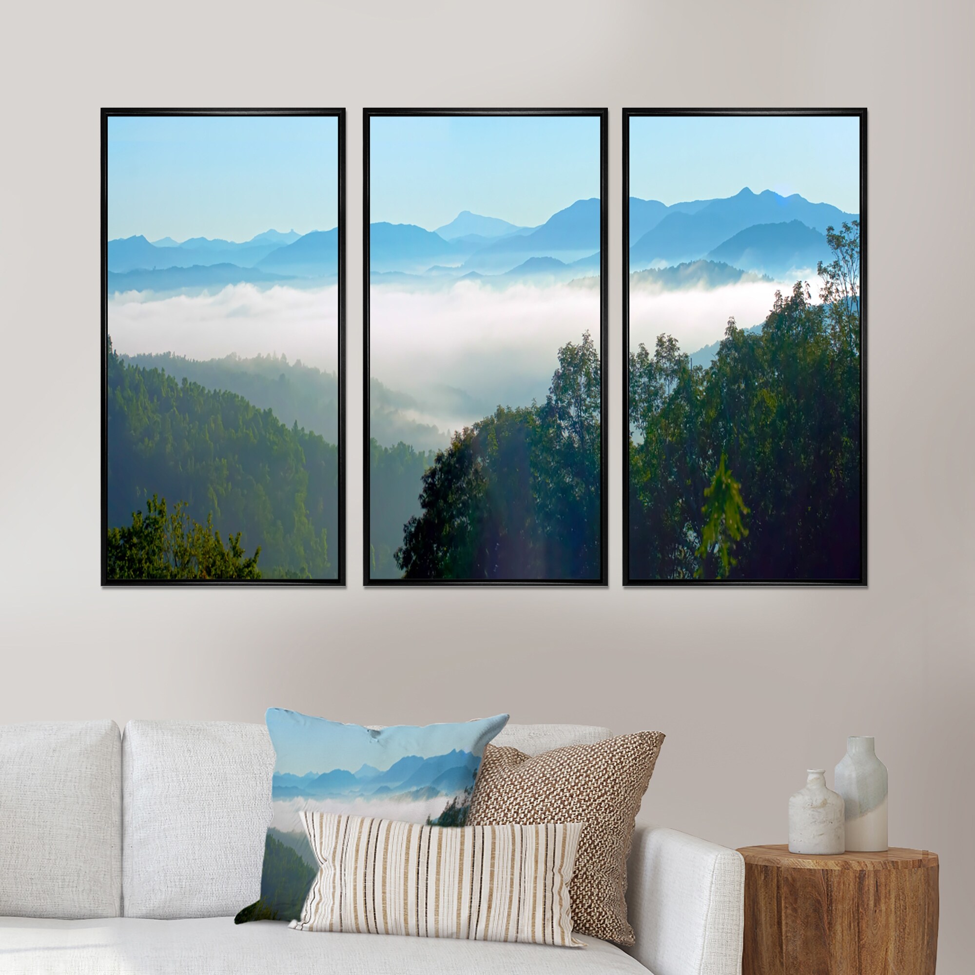Designart "Morning in Blue Ridge Parkway" Landscape Framed Artwork Set of 3 - 4 Colors of Frames