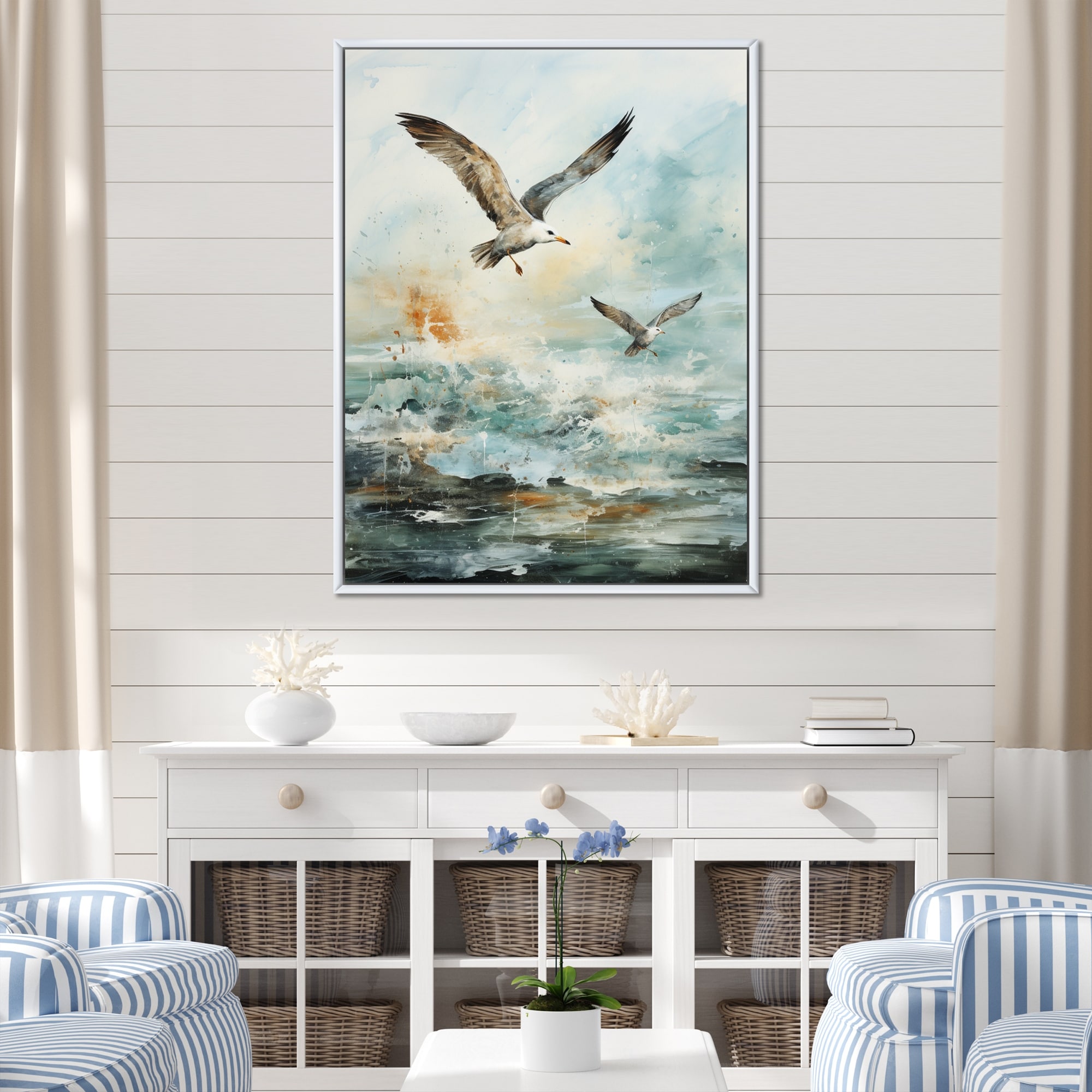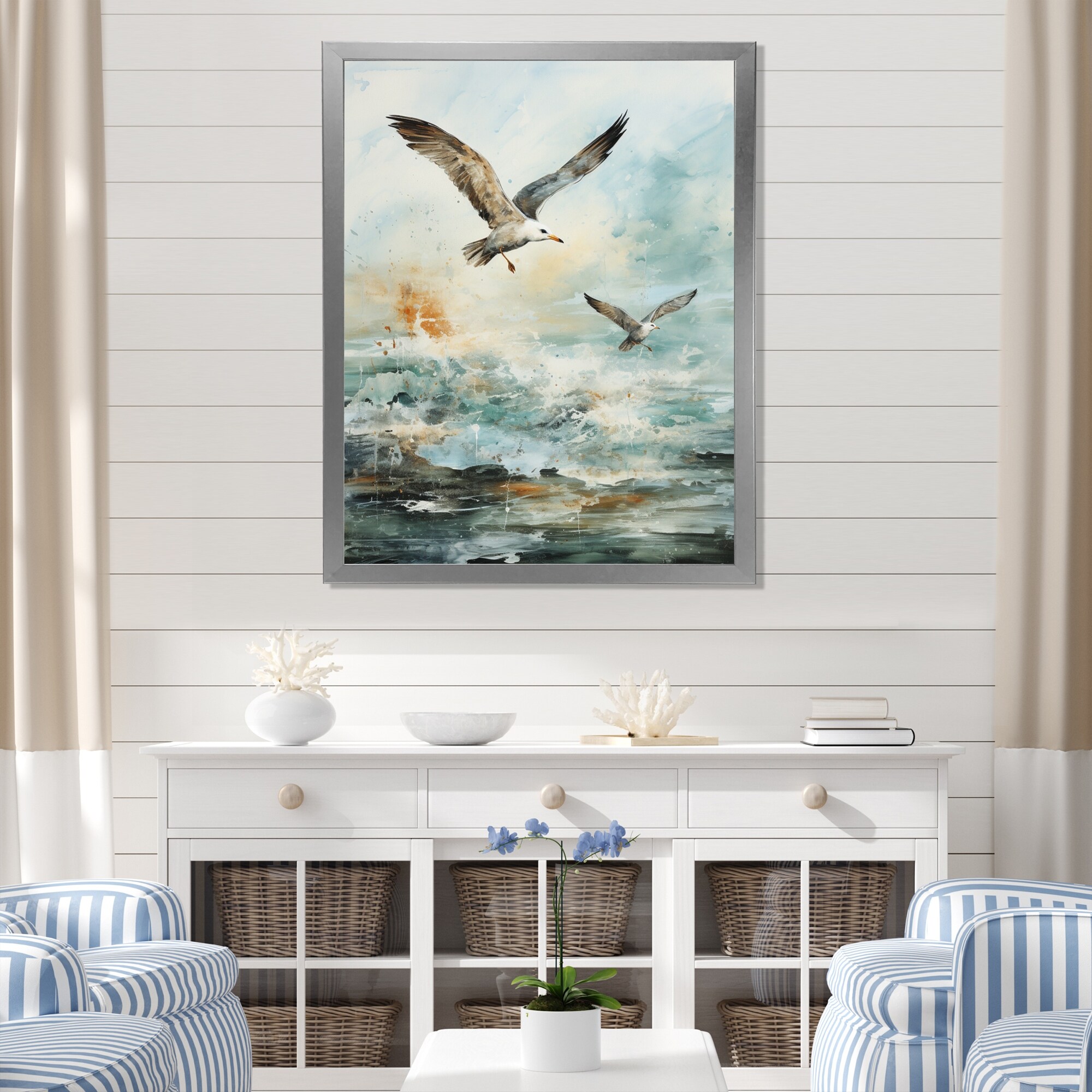 Designart "Minimalism Seabirds Rising" Coastal Beach Sand Framed Canvas Art Print