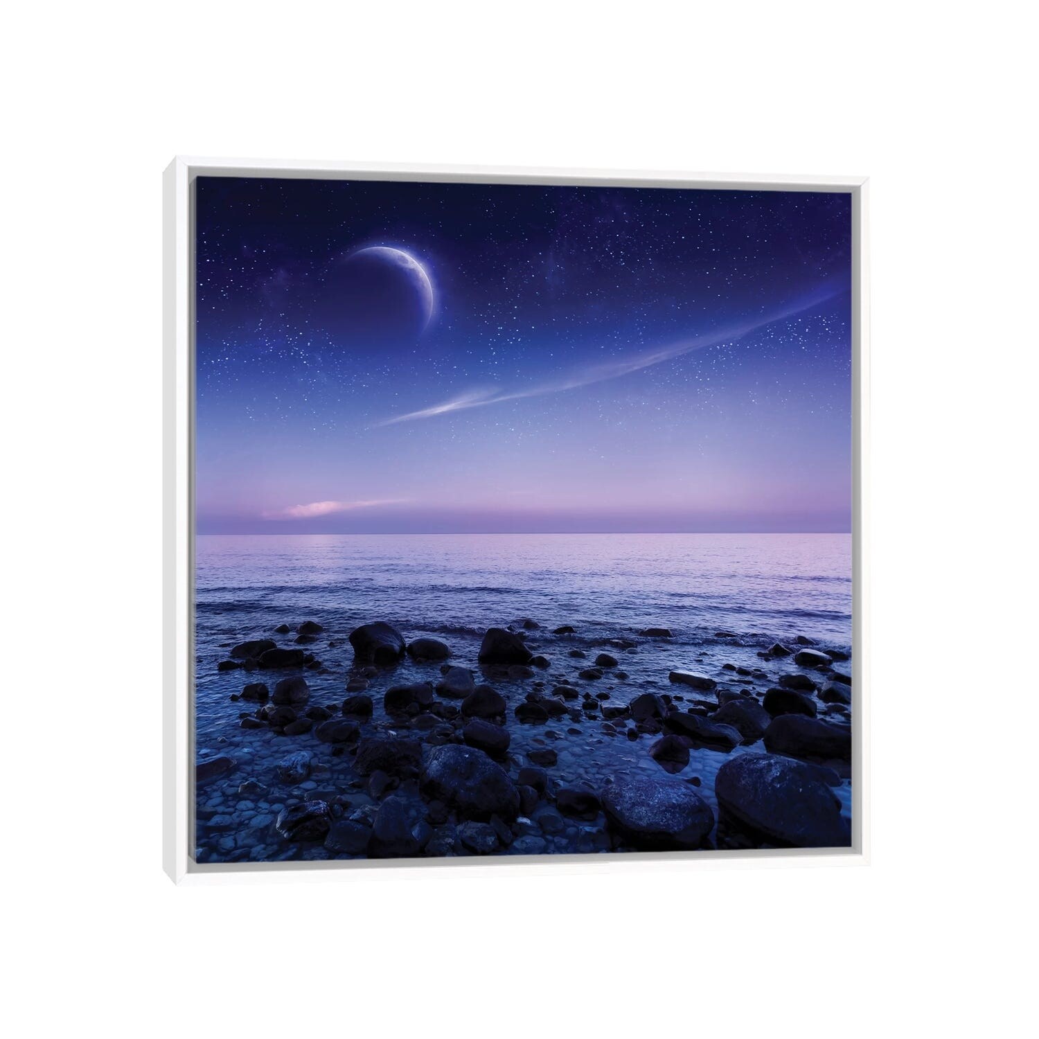 iCanvas "Moon Rising Over Rocky Seaside Against Starry Sky." by Evgeny Kuklev Framed Canvas Print