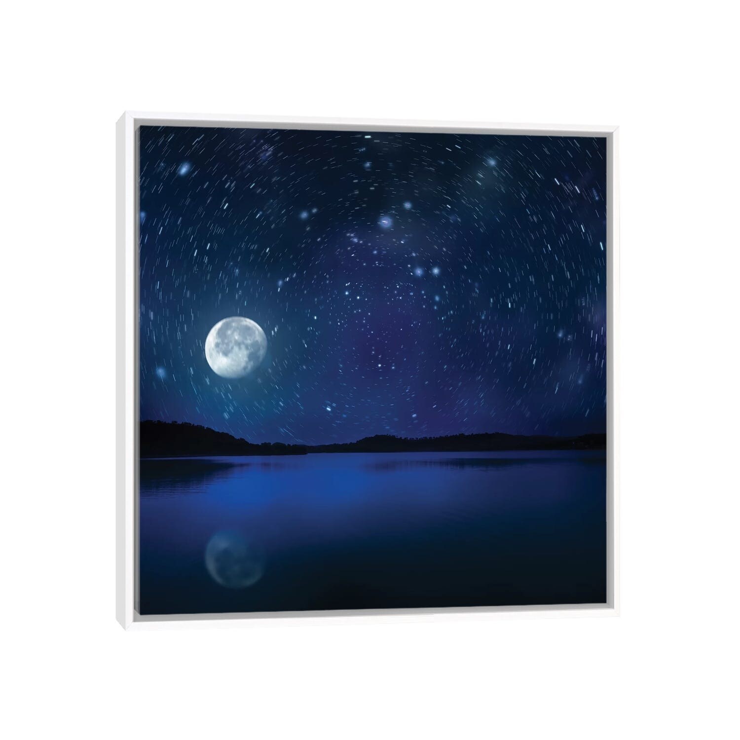 iCanvas "Moon Rising Over Tranquil Lake Against Starry Sky." by Evgeny Kuklev Framed