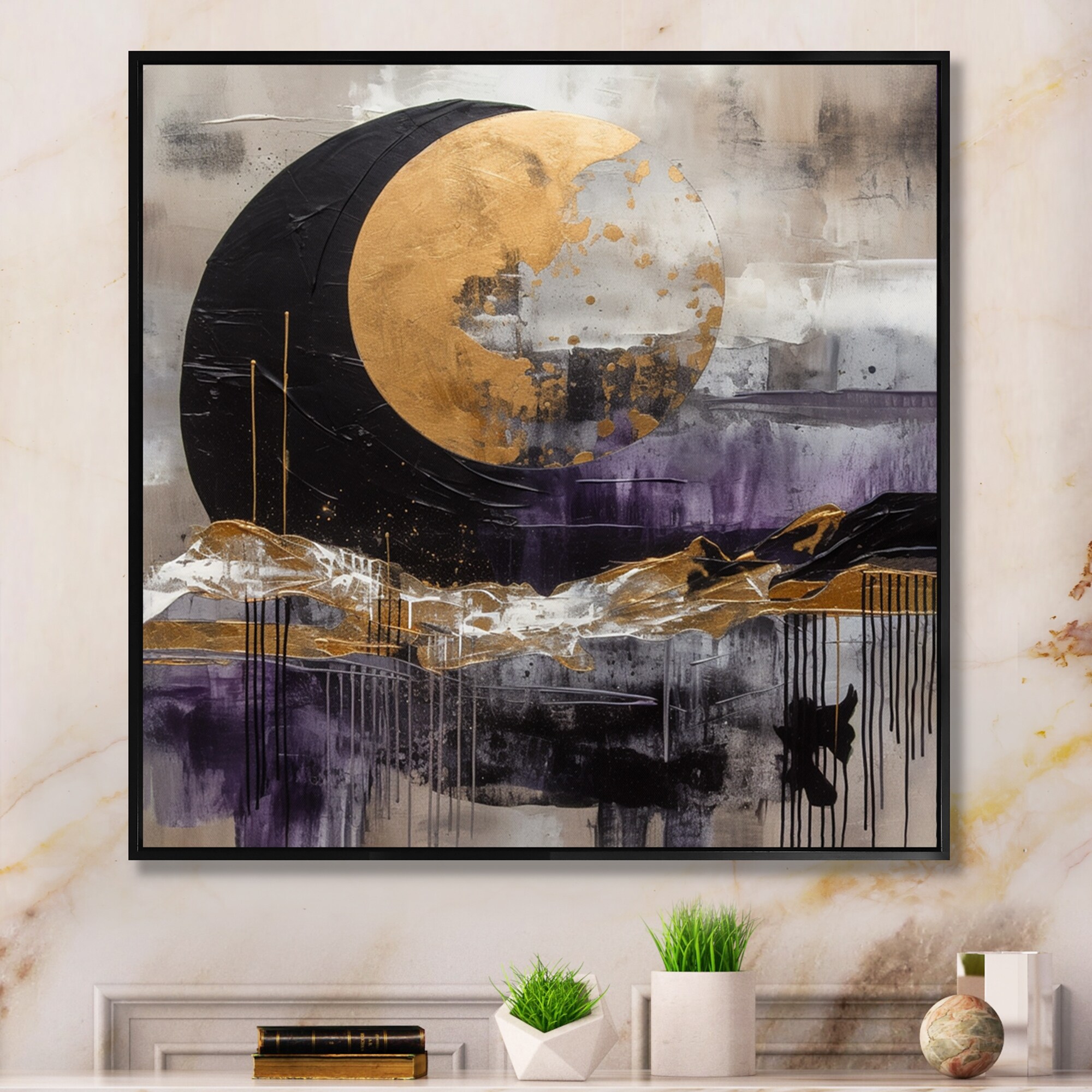 Designart "Golden Rising Moon Iv" Landscape Modern Framed Canvas Prints