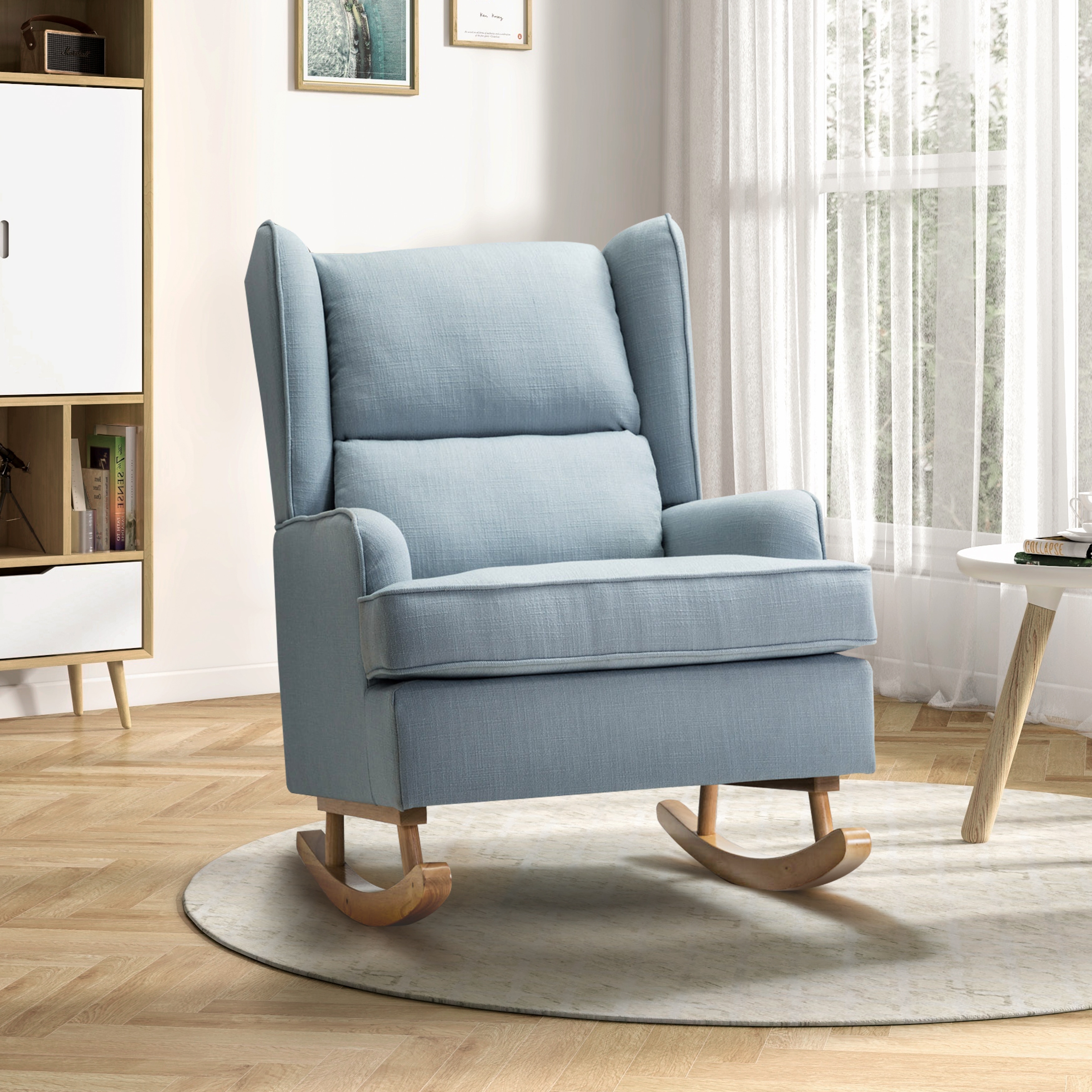 Rocking Chair Upholstered Mid Century Modern Rocker Oversized Wingback Armchair for Living Room with Two Legs Option