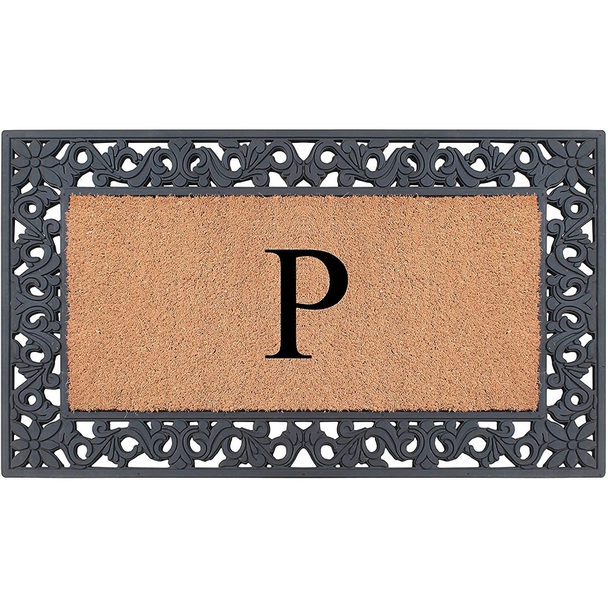 A1HC Floral Border Rubber and Coir Large Outdoor Durable Monogrammed Doormat, Black - 23" X 38"