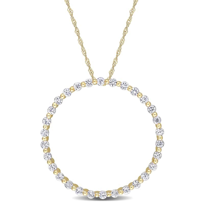 Miadora 10k Yellow Gold White Sapphire Circle of Life Bead Necklace