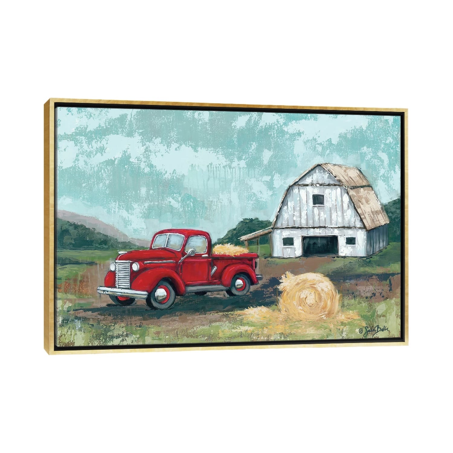 iCanvas "Red Truck at the Barn" by Sara Baker Framed Canvas Print