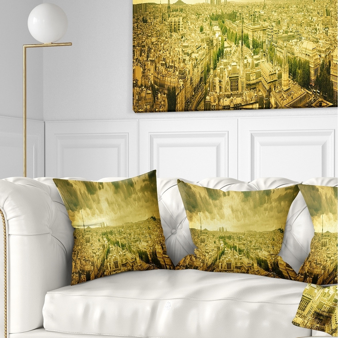Designart 'Paris Panorama with Scenic Sky' Skyline Photography Throw Pillow