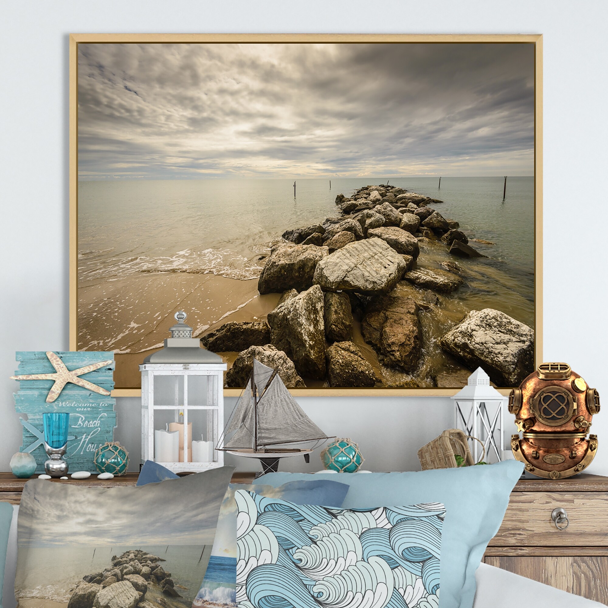 Designart "Mystic Beach Coast Ocean Scenic" Nautical & Coastal Framed Canvas Art Print