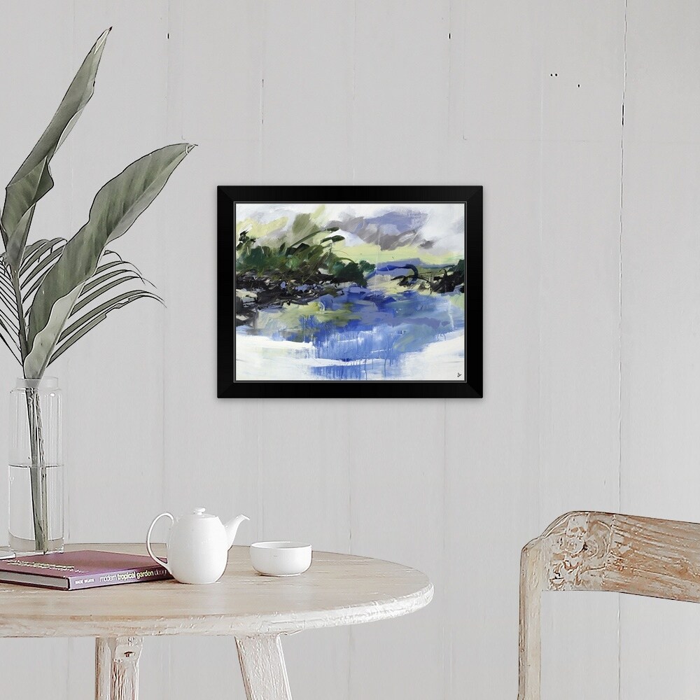 Designart "Green Abstracted Scenic Views Ii" Abstract Landscape Framed Canvas Print