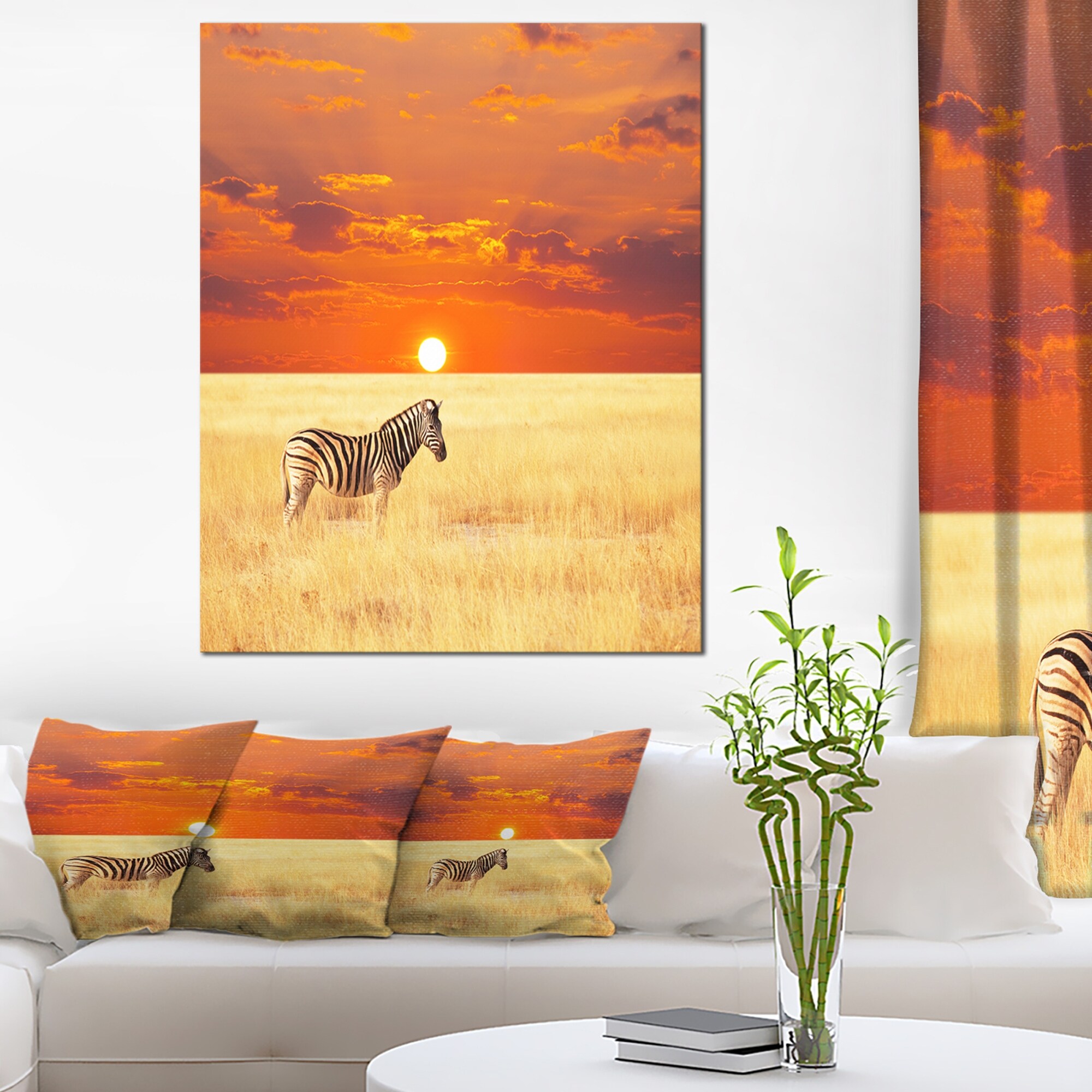 Designart "Scenic African View with Zebra" Extra Large Landscape Canvas Art