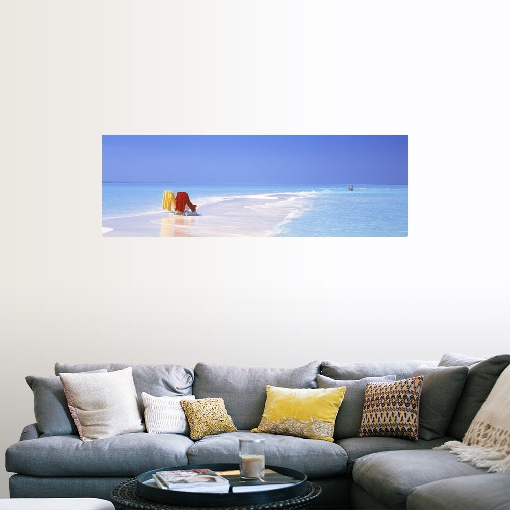 Designart "Summer Seascape with Scenic View" Seashore Framed Canvas Art Print