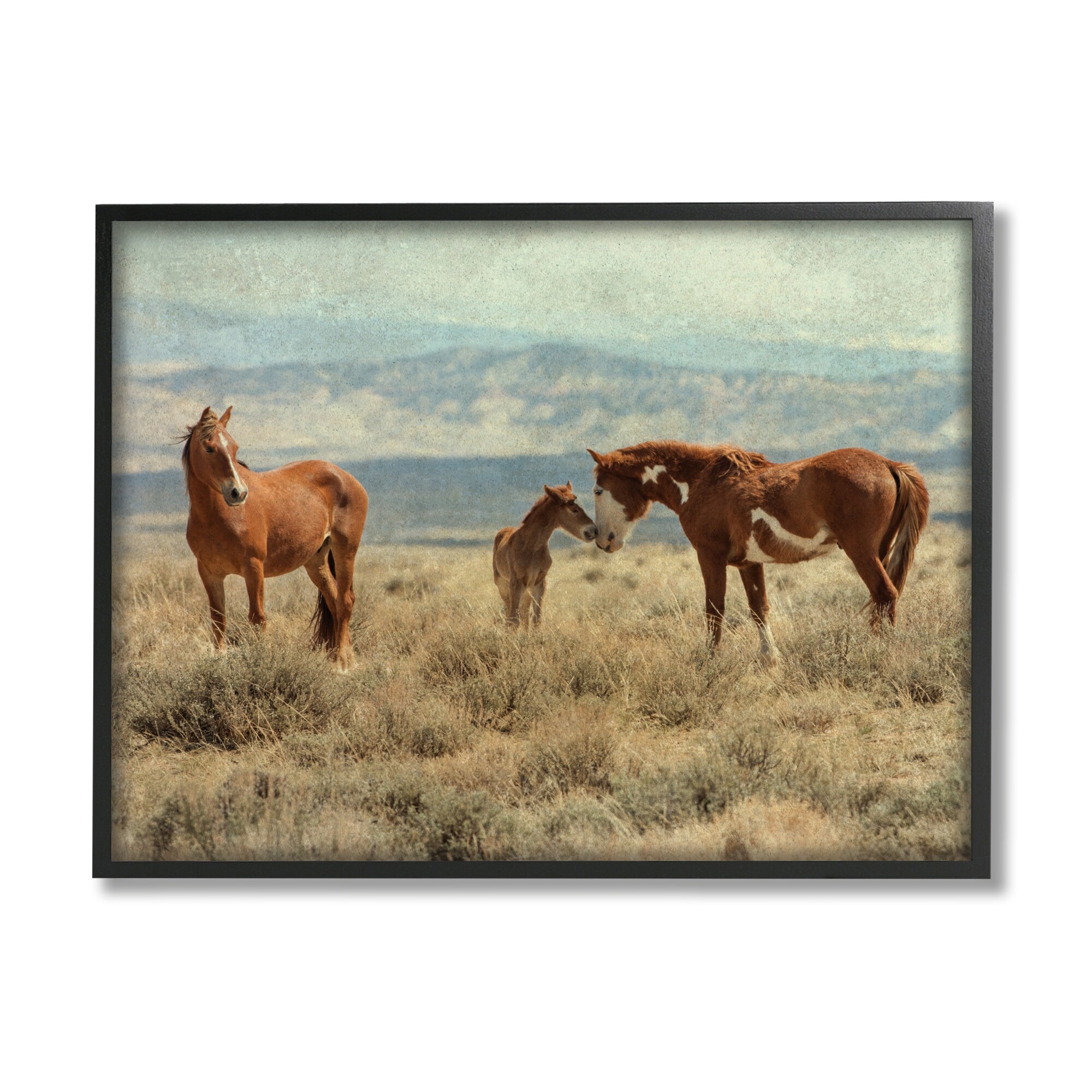 Stupell Industries Heartening Horse Foal Family Scenic Mountain Clouds Framed Wall Art, Design by Jan Walters