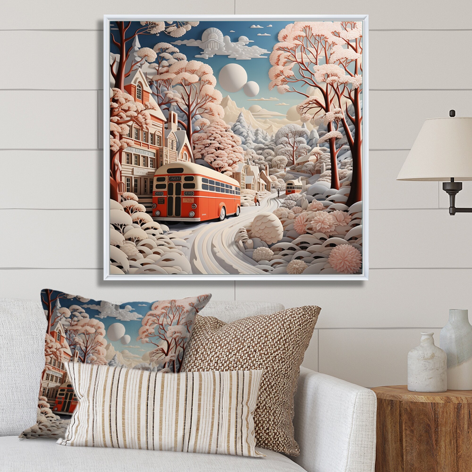 Designart "Red And White Winter Silent Symphony I" Winter Landscape Framed Canvas Wall Art