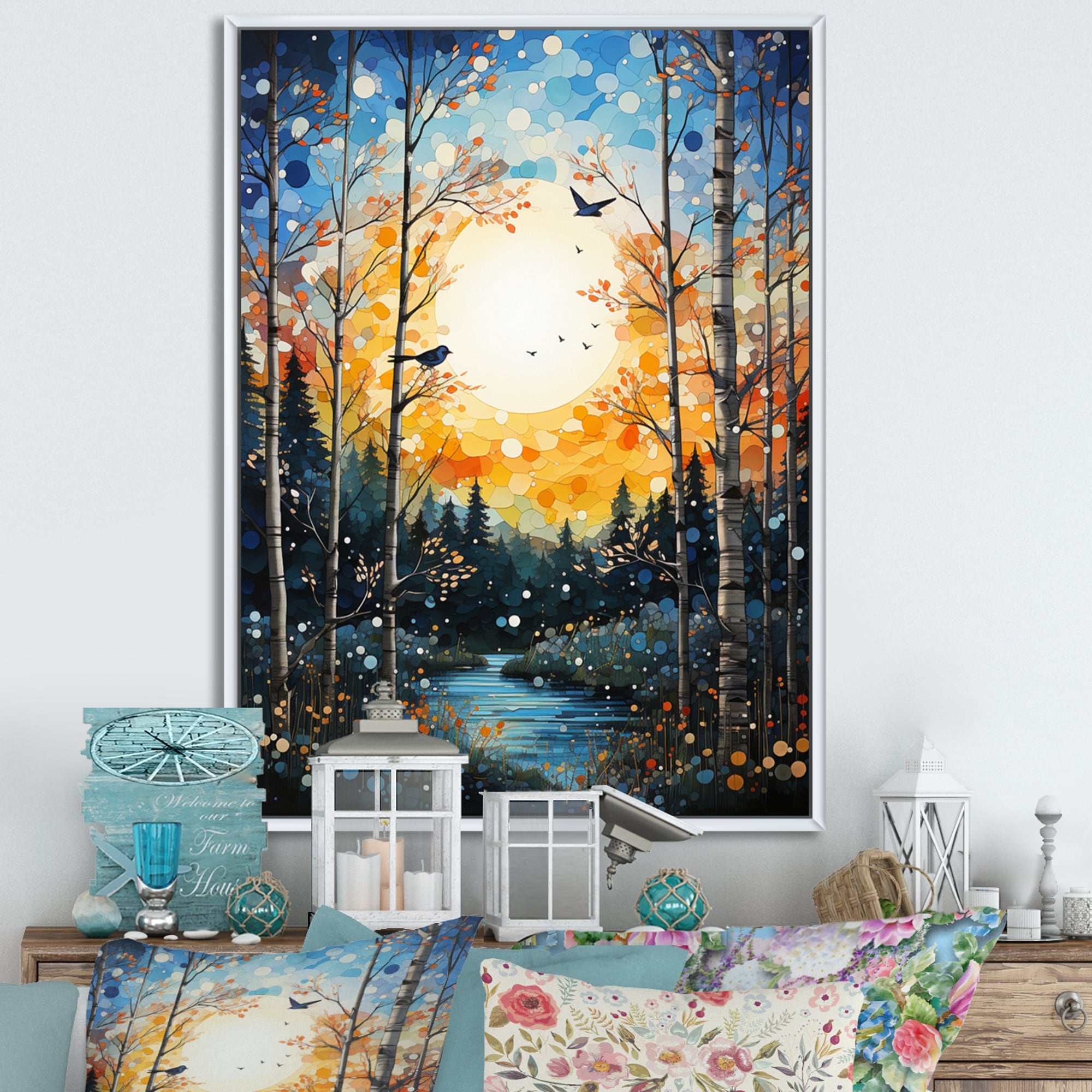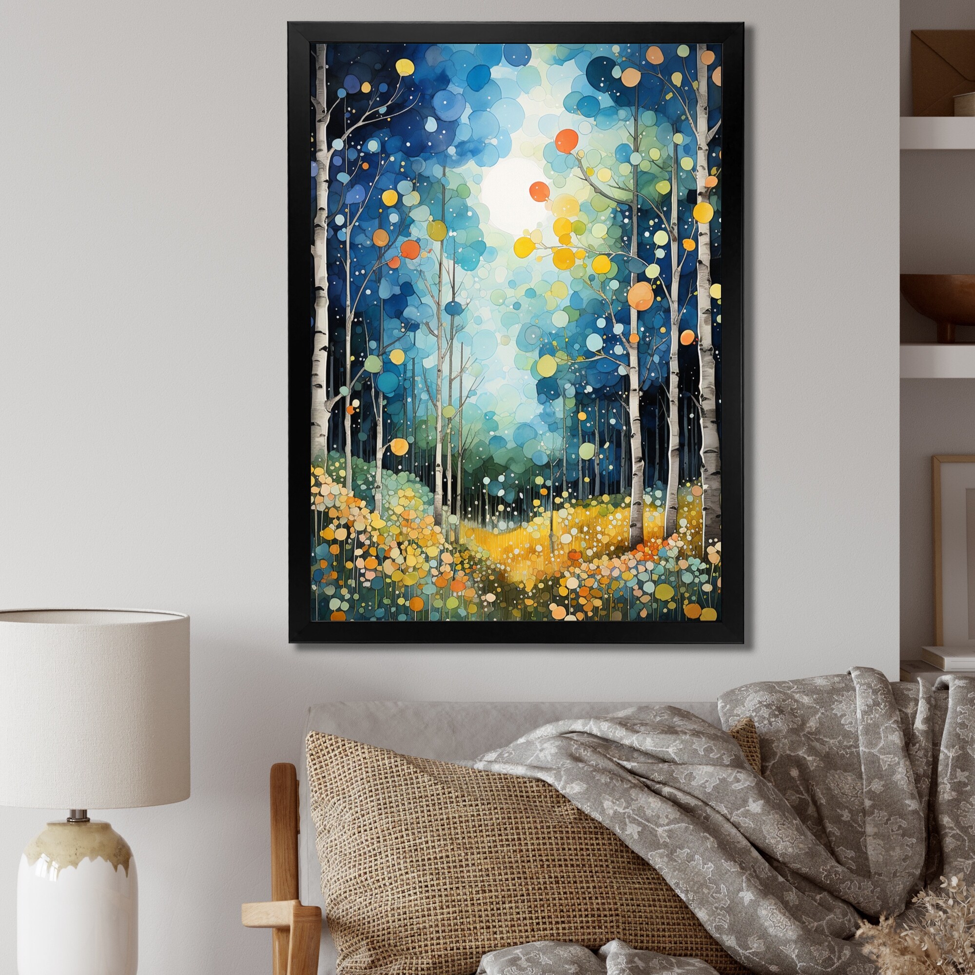 Designart "Forest Silent Symphony Pointillism II" Forest Framed Canvas Print