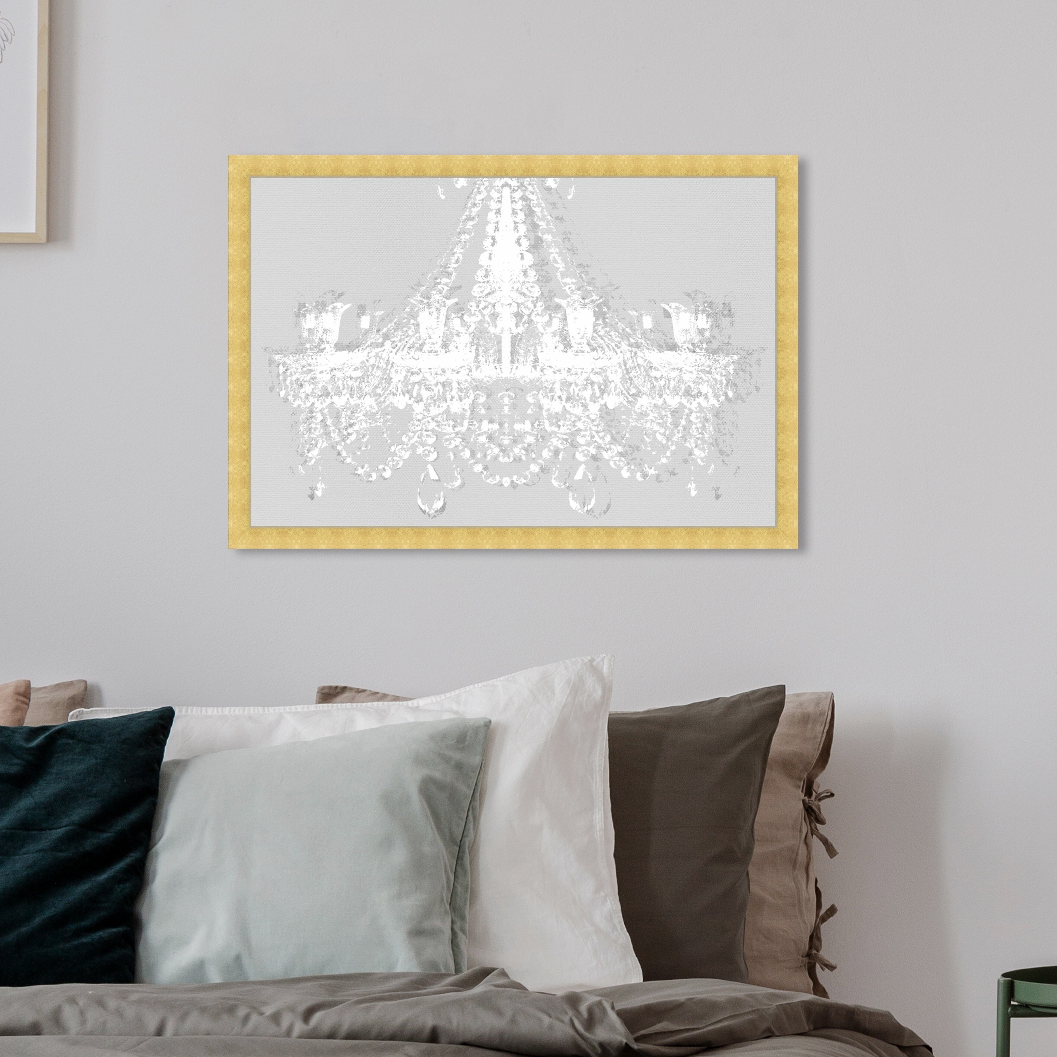 Oliver Gal 'Dramatic Entrance Silent Gray' Fashion and Glam Wall Art Framed Print Chandeliers - White, Gray