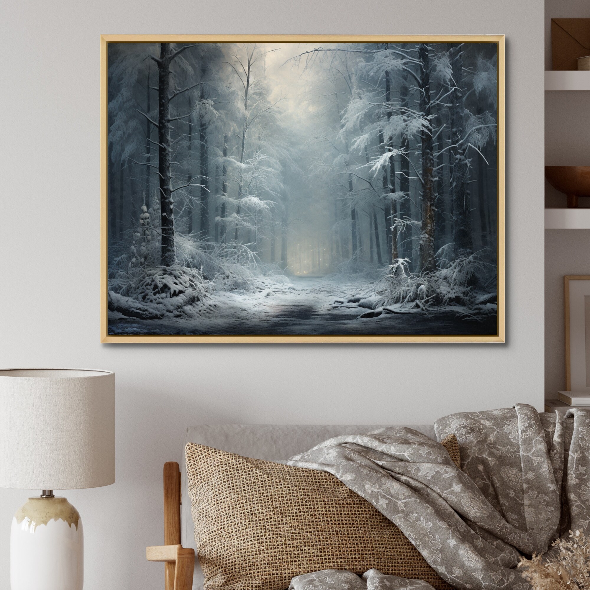 Designart "Winter Silent Woods I" Winter Landscape Framed Wall Art Living Room