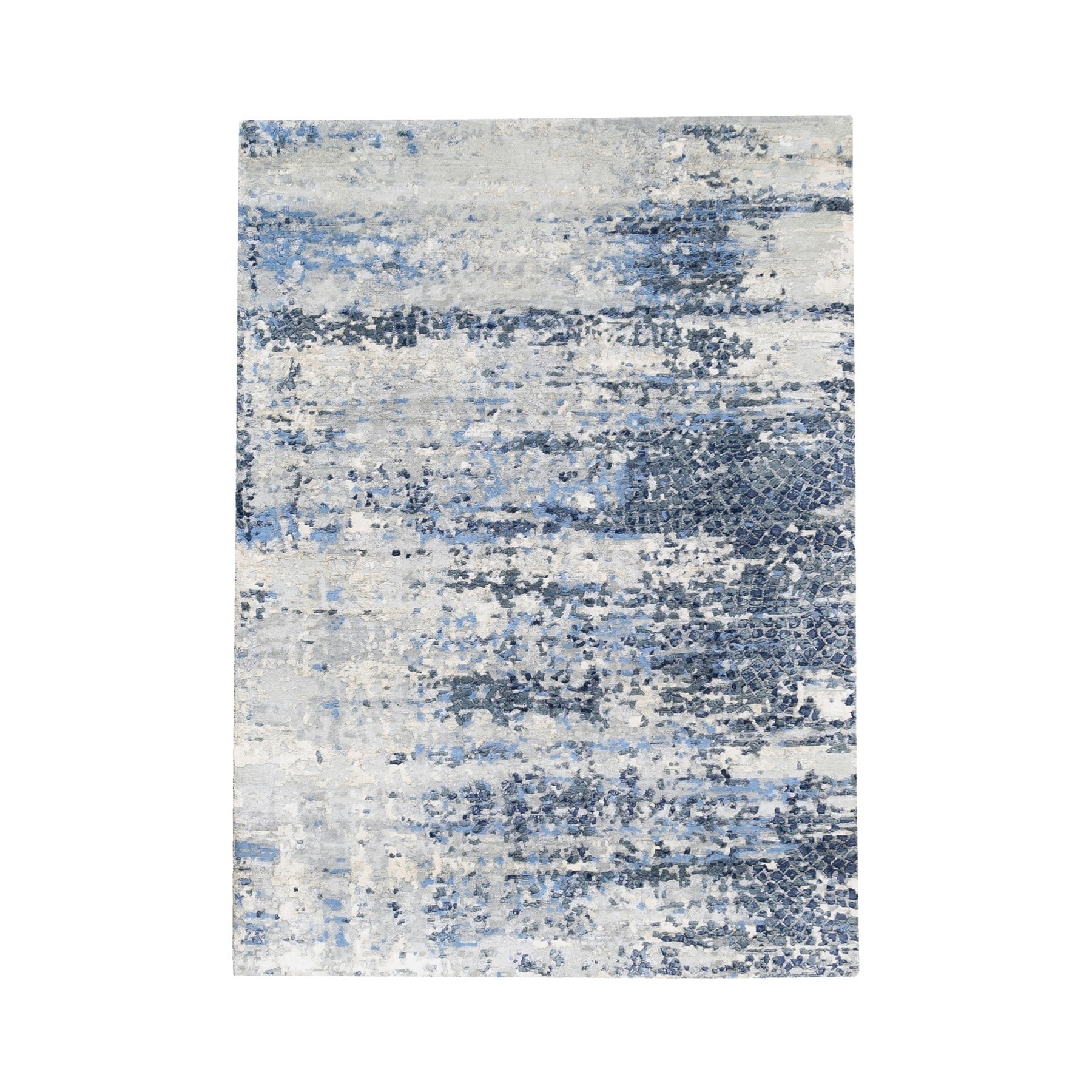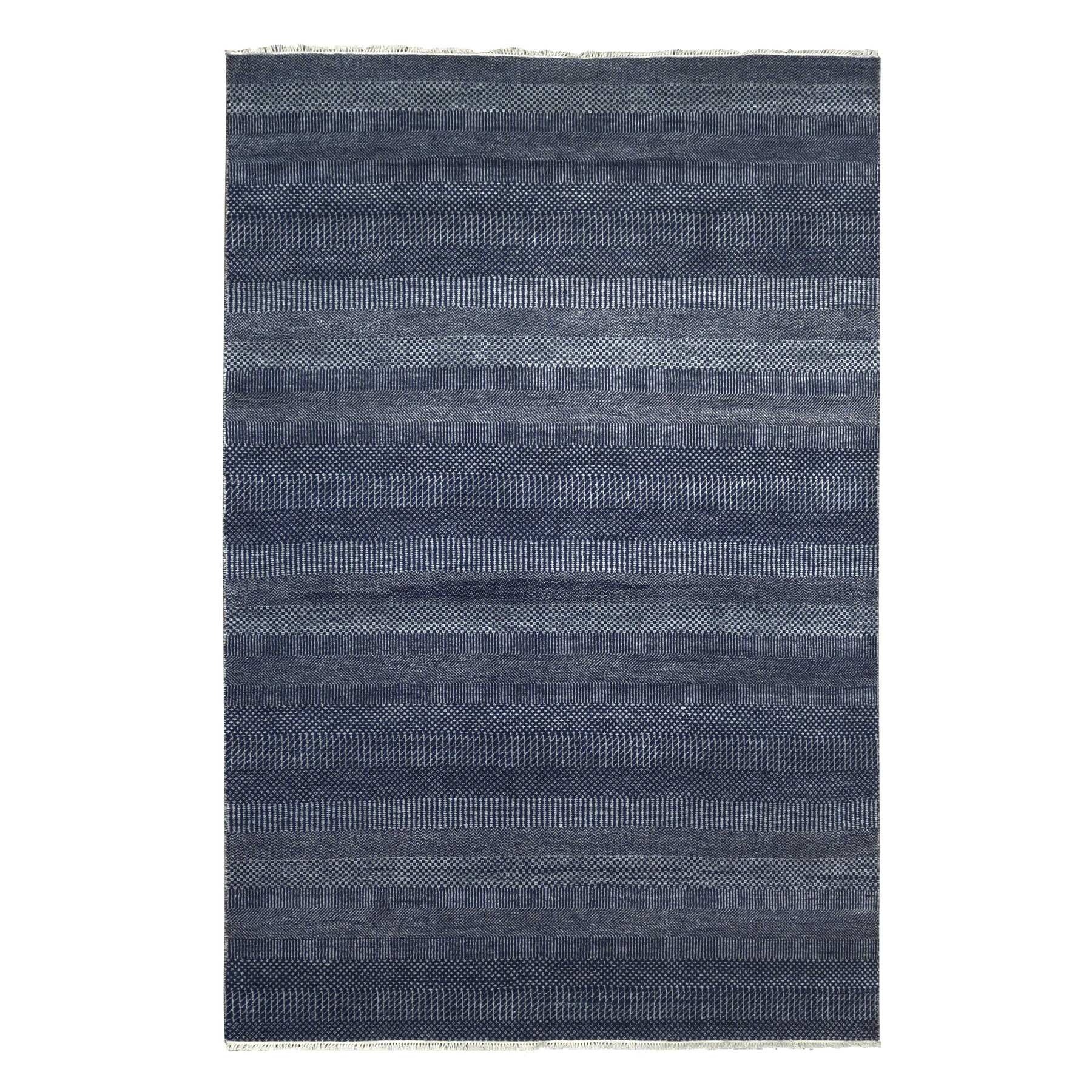 Hand Knotted Blue Modern and Contemporary with Wool & Silk Oriental Rug (6' x 9'1") - 6' x 9'1"
